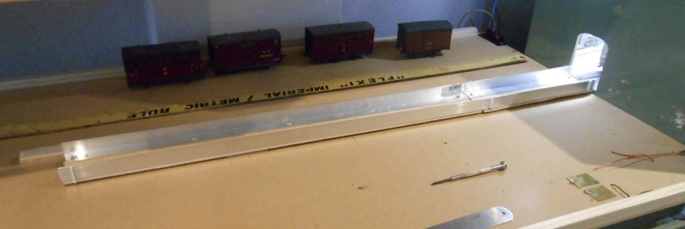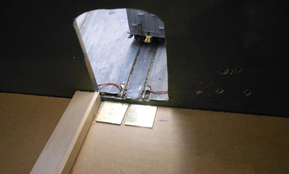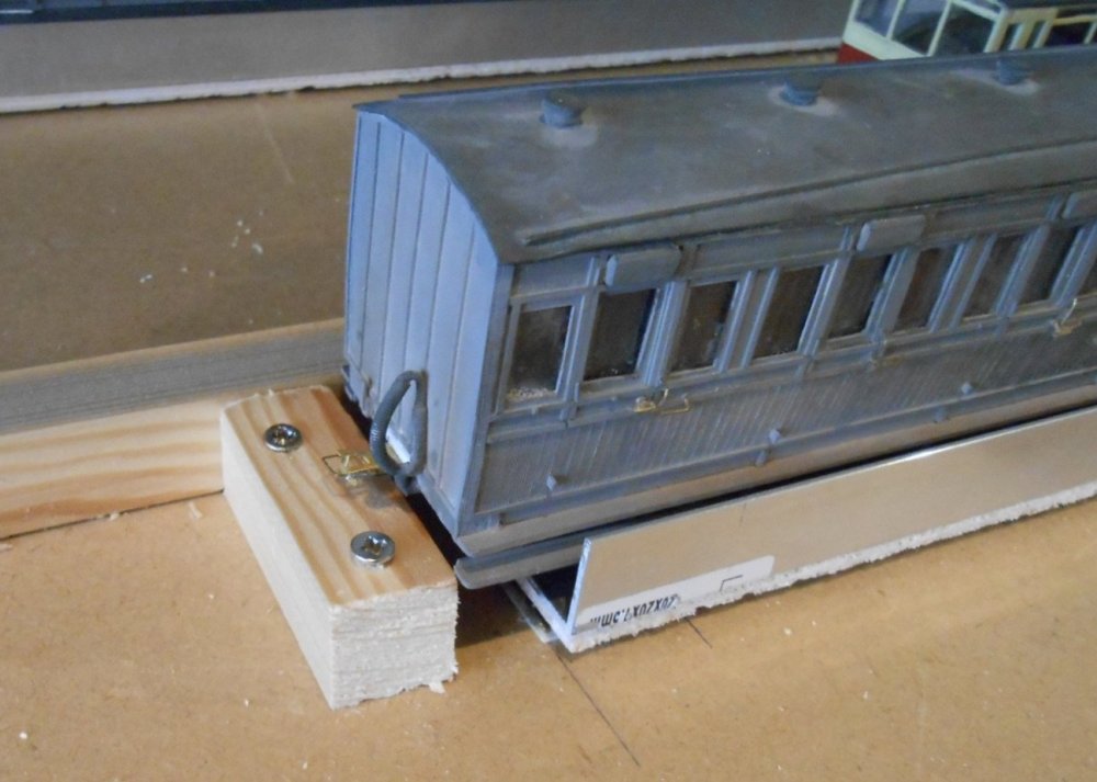 The trick is in the fine tuning, Mick. The plasticard strip on the aluminium angle vertical is just pushed against that strip of wood. If the cassette doesn't line up exactly and anything derails going to/from the layout, I add a bit more plasticard. Ten thou is just 0.25mm, so a bit of trial and error soon gets it sorted.