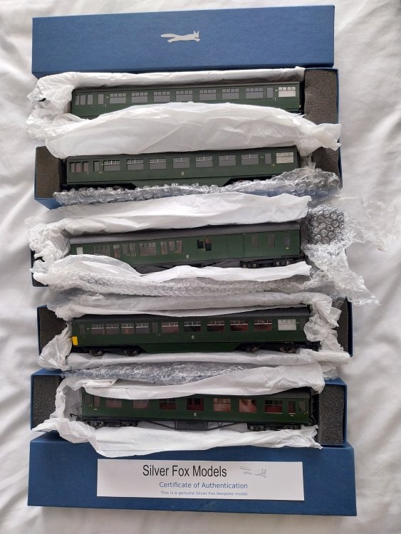 I have a set of genuine Silver Fox railcar and carriages that made up the last train on the Derry Road. They were never run on a layout but were commissioned and never used. The railcar is non-powered so would need to be fitted with a powered bogie unit. All carriages are numbered and everything is detailed as per Silver Fox standard. They are MINT and BOXED. I will post pictures when l return home on Sunday but would be open to sensible offers. I am in Tyrone and can post. If interested PM please.