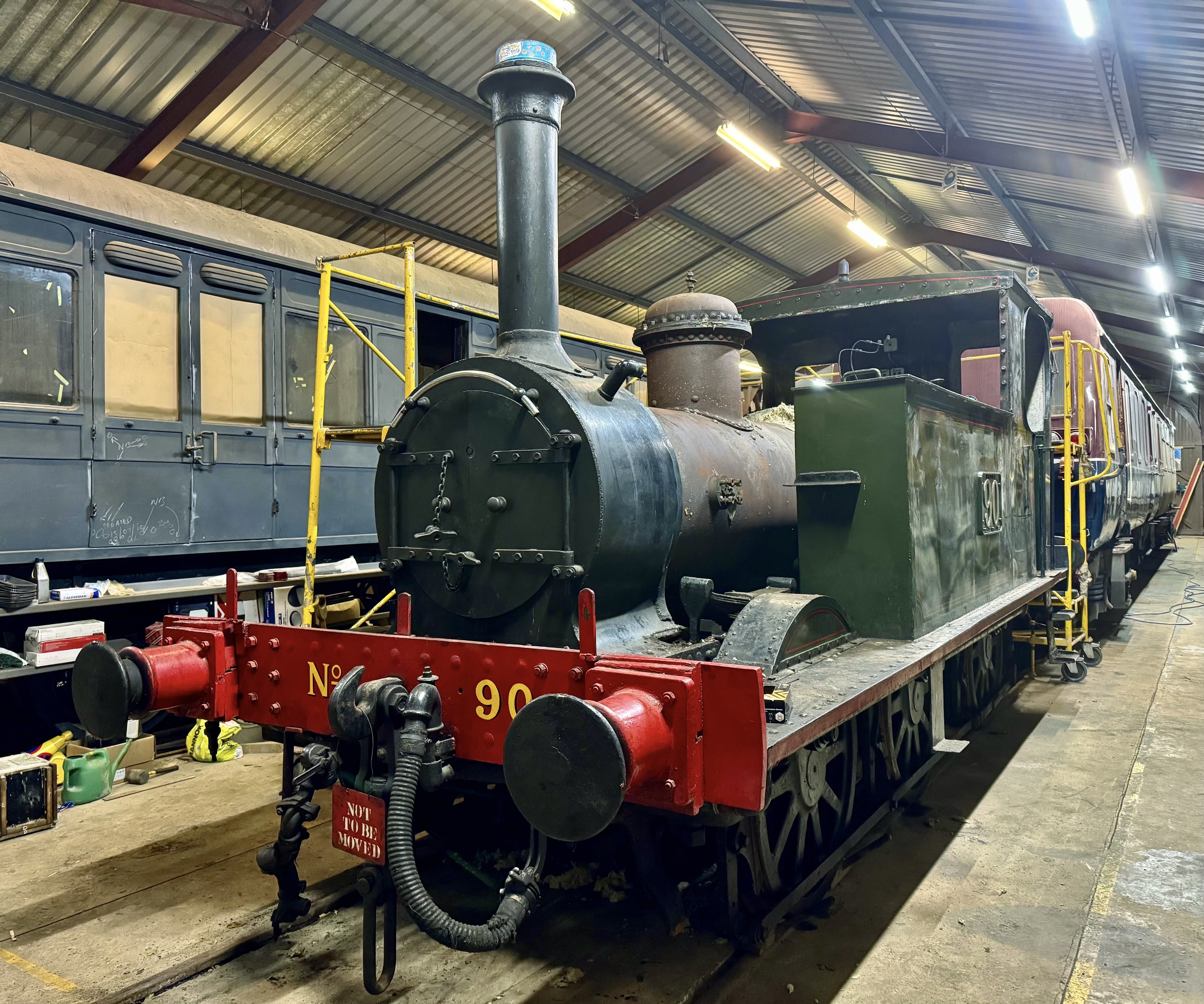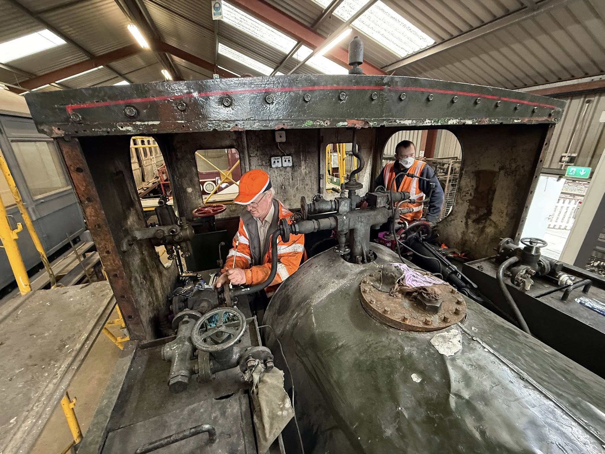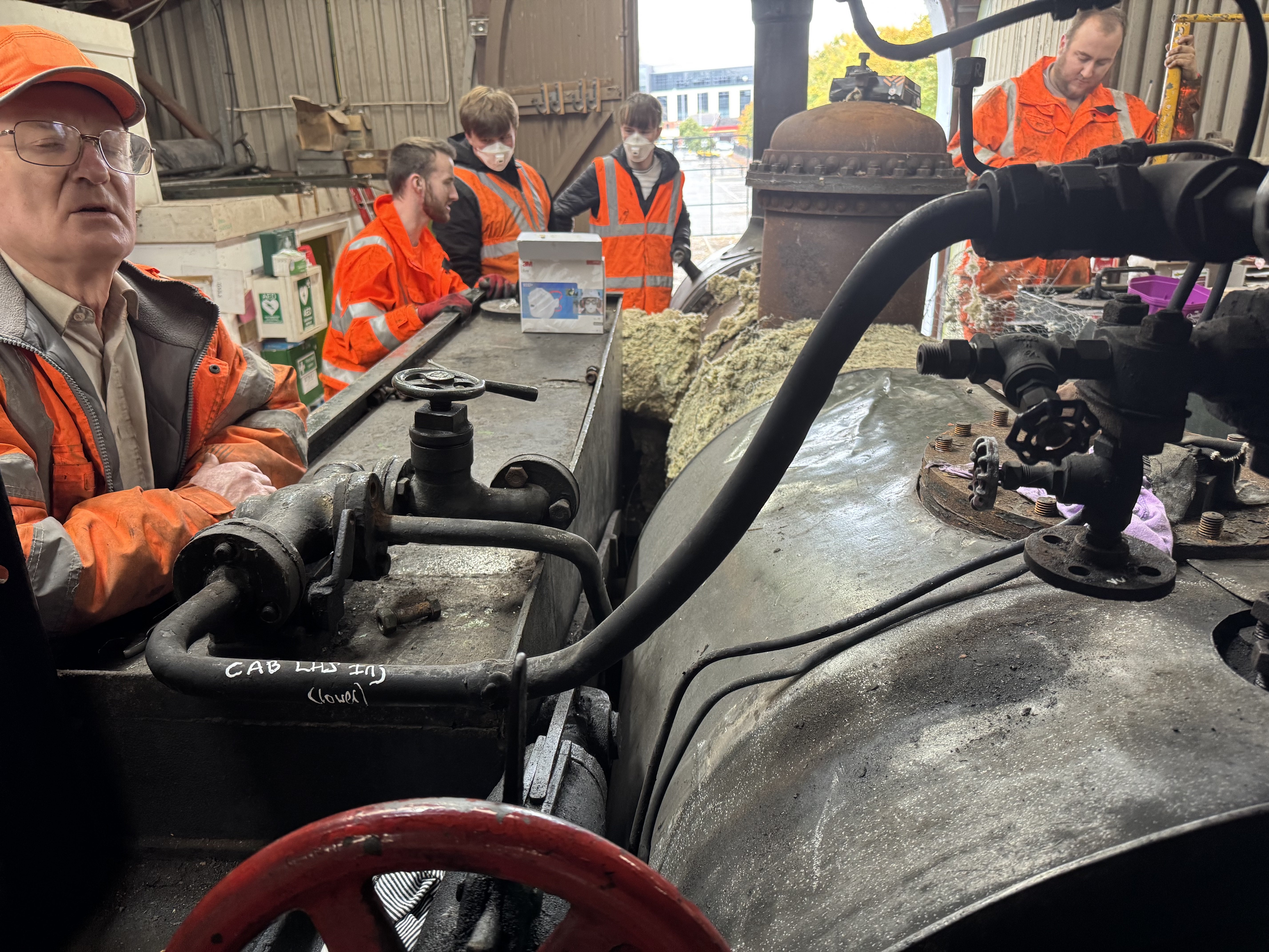 Apologies for the brief interruption. We now resume normal programming. The engine shed was damaged during the flood, so we weren't allowed to access it or the locos inside. Work on repairing it is progressing fast, and last week we were able to remove 90 from the shed and moved to the workshop at the other side of the yard. Yesterday we had about a dozen volunteers working on the loco at one time, so we were able to do a huge amount of work in just one day: Cab front removed Cladding and lagging removed Boiler fittings removed We're now in contact with boiler contractors and are working on a fundraiser for 90's overhaul. Our volunteers come from across the island – from Dublin, Belfast, Kildare, Meath, and even Derry~Londonderry. If you want to learn new skills, meet new people, and play your part in preserving our shared industrial heritage, please send me a message to ask about getting involved.