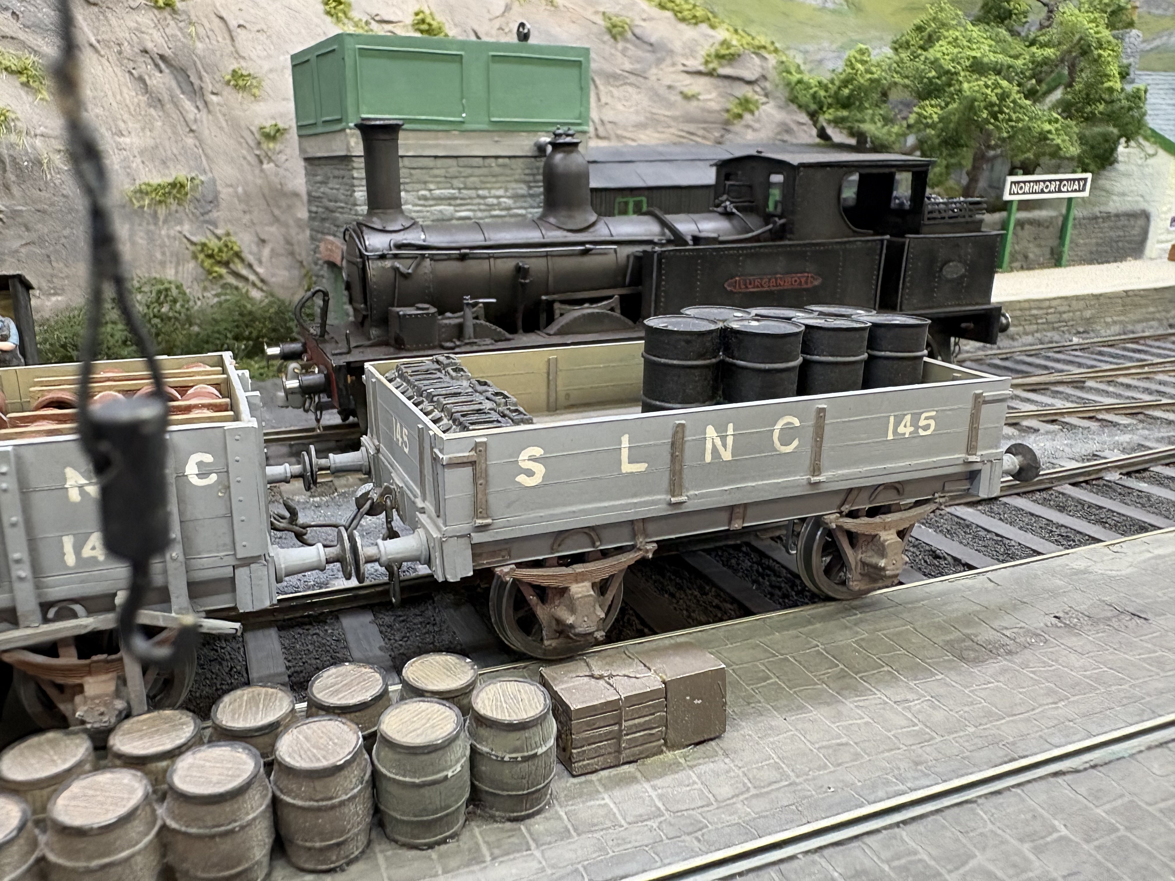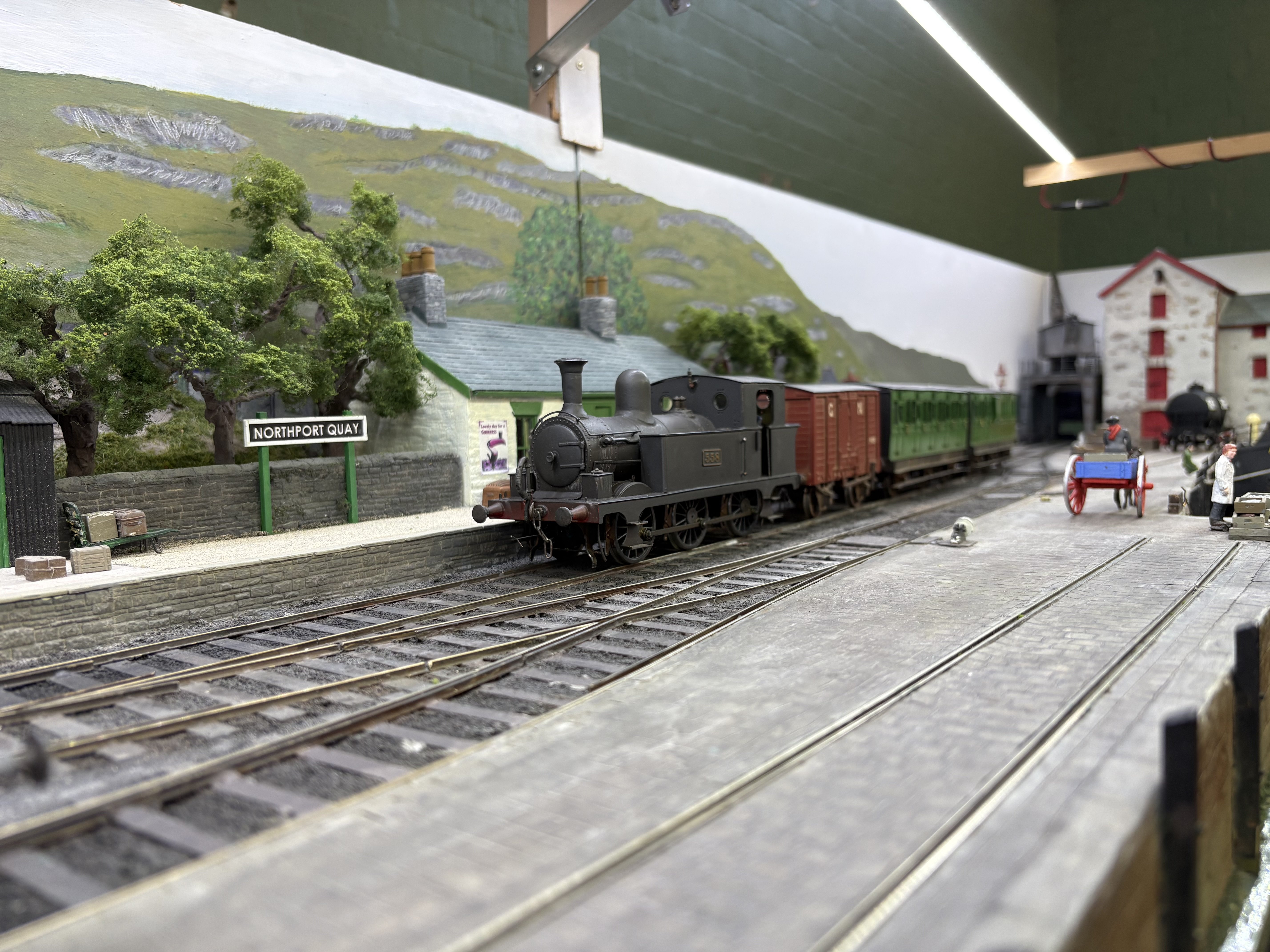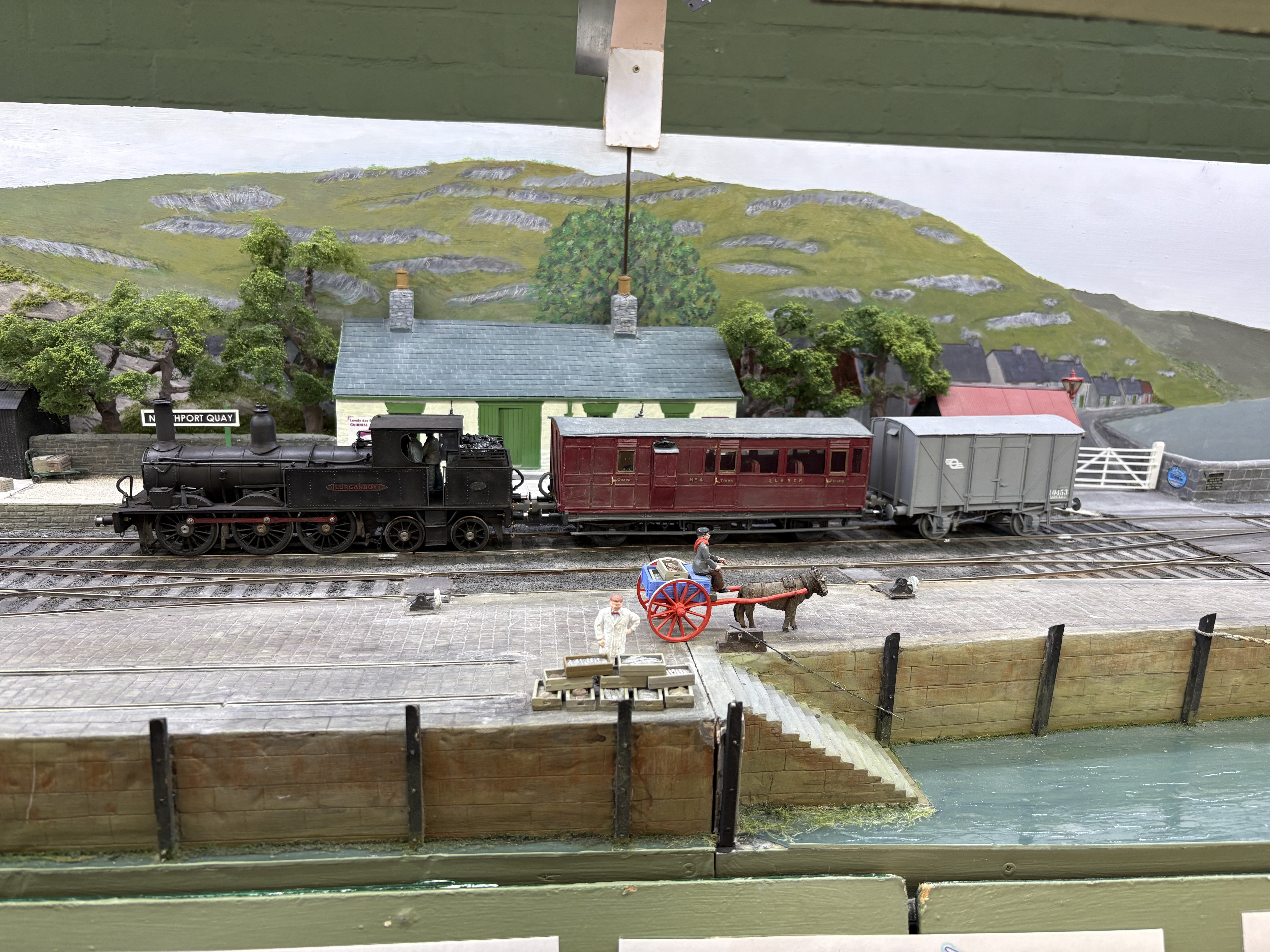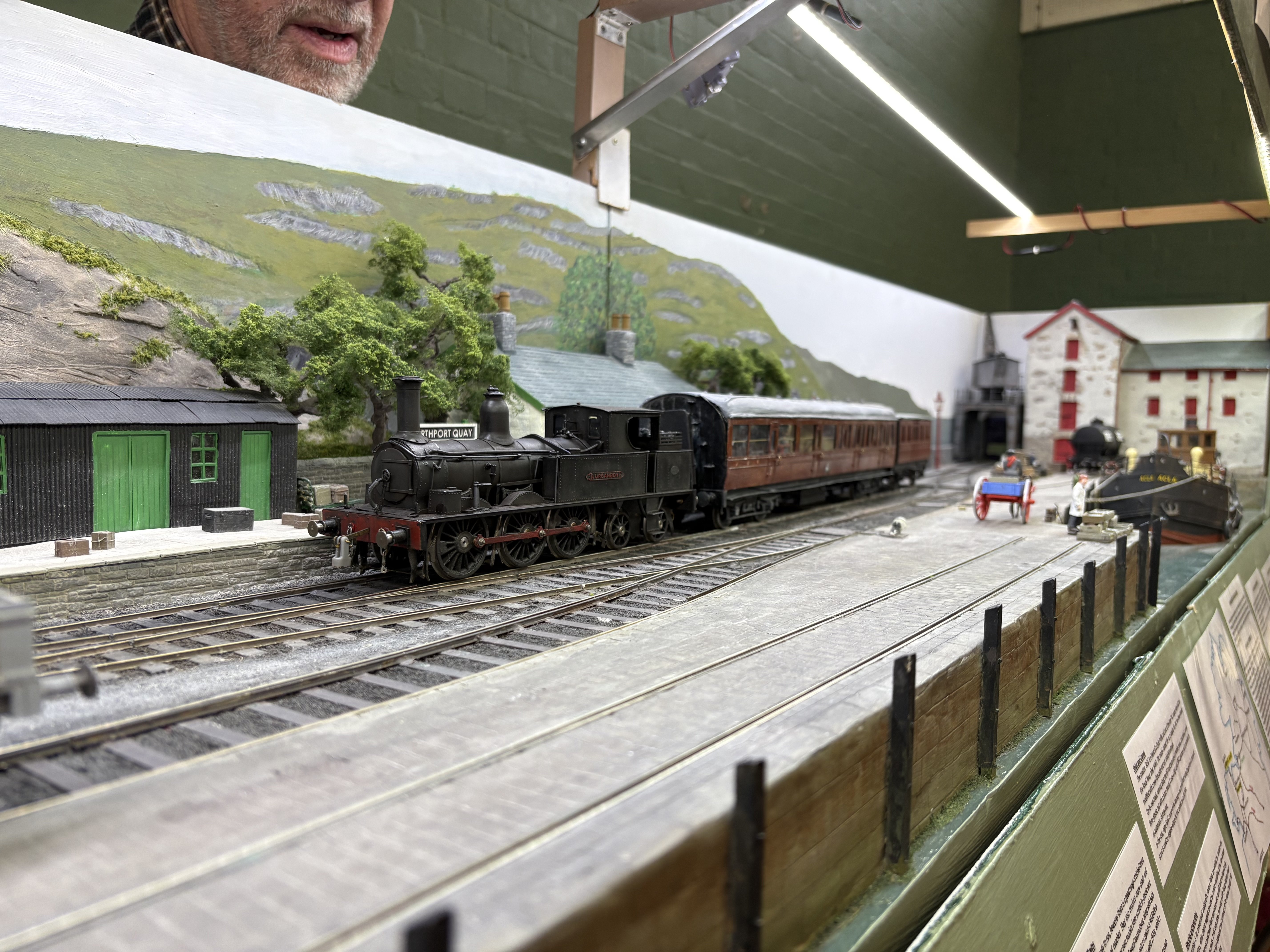 Well that was fun - a day on NPQ at Aldershot. A few annoyances - the SG2 keeps shorting out, and there were one or two stock issues which I trace to dodgy back to backs or stray pickups. The PP, on examination at home, has a pickup now bent at a strange angle, which explains at least one derailment….The GN coach needs more finishing work, and the magnetic couplings, highly effective though they are, will get some tweaking, not least camouflage. What an enormously fun day it was all round though. Great company and what an absorbing layout to run. To please Leslie we even ran a through portion of the Bundoran Express! Unless I’m greatly mistaken, I think this is the first appearance of corridor stock on NPQ. The coach is also about a foot and a half long ! I also achieved two personal goals. One was to operate the traverser in turntable mode. This is quite a responsible task, given that the deck is loaded with Mr Holman’s years of effort and dedication and a false move on my part could send it floorwards… The second one was to have a train of my own stock occupying a fiddle yard road and working a full part of the NPQ roster. Lurganboy, which has lurked in her box for months after disgracing herself at Uckfield and Tolworth, ran as sweet as a nut, and hauled my coach 4 and H van quite happily. The van is vacuum braked of course…. Willing suspension of disbelief and all that…. splendid day and always a joy to spend time with David H. Lots of advice, help and general chat in the margins. Very pleasing to see Leslie and companion too!