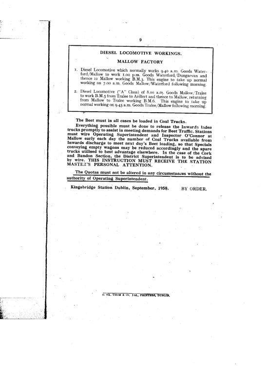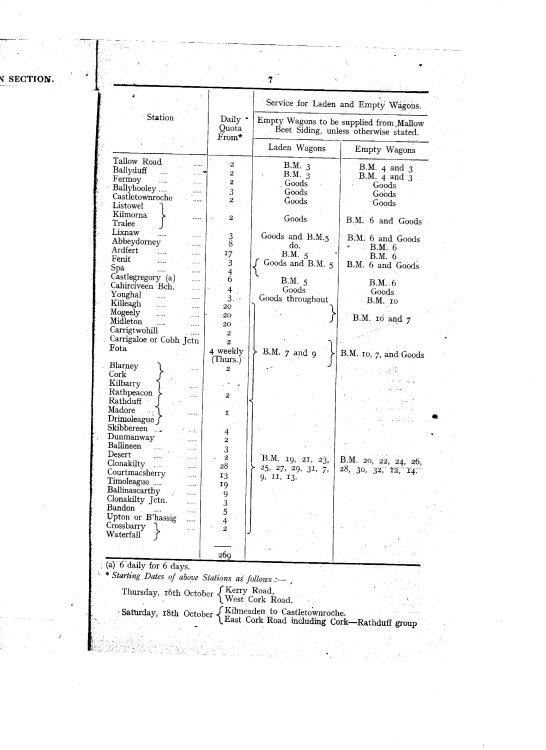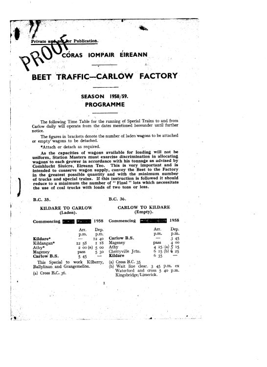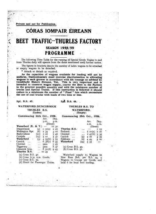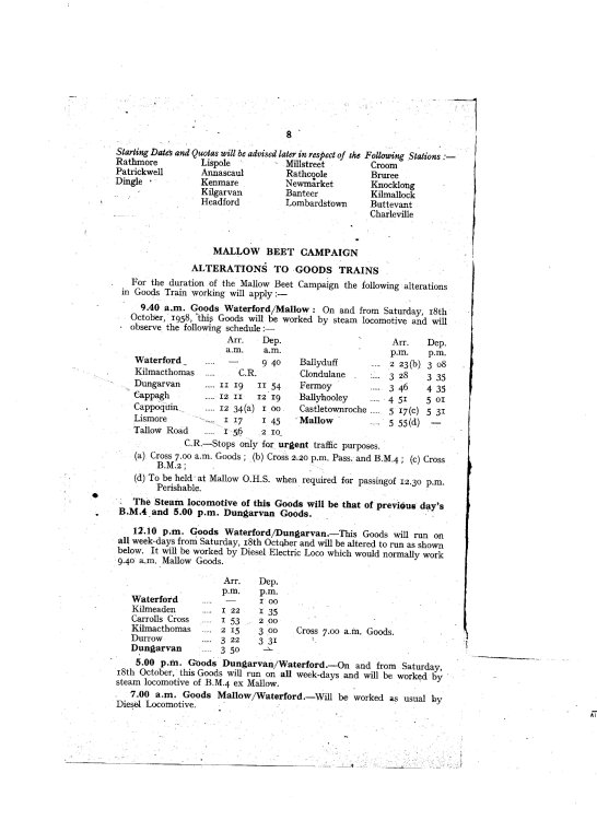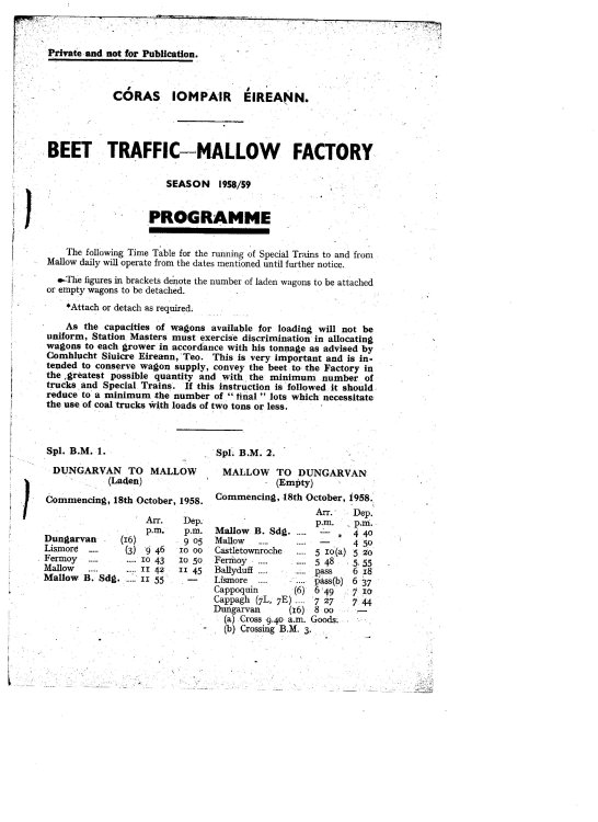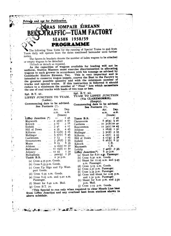 The "Beet Campaign" traffic arrangements were advised in the weekly circular at the start of the season.