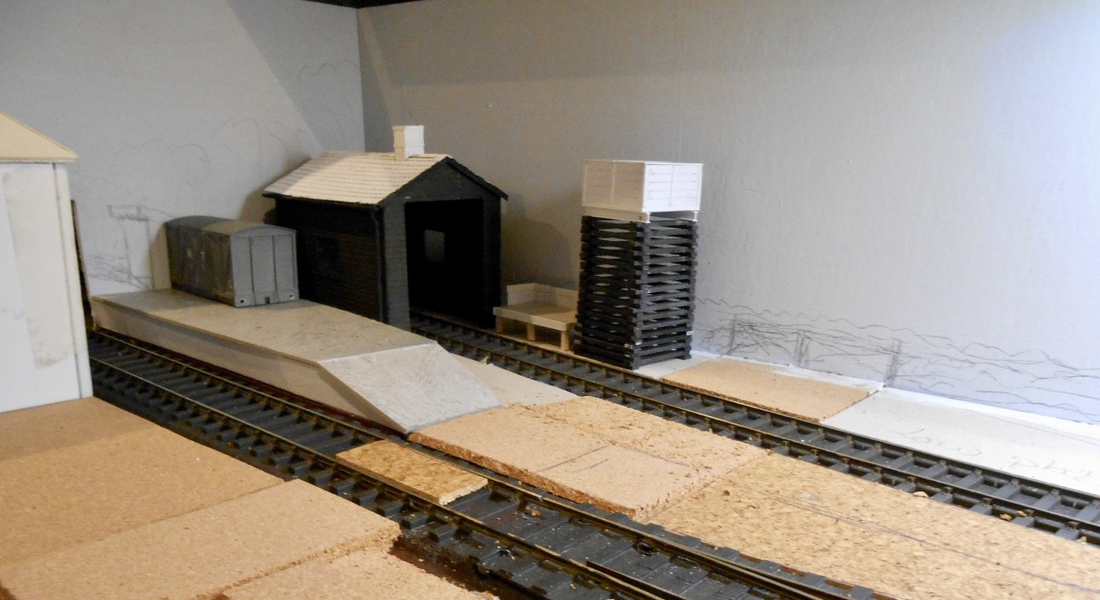 Think that sounds about right. Even in 7mm concrete has zero texture, so card and talc should work well. The difficult part with concrete is the colour. Humbrol concrete just isn't right, but then the shade varies according to age, weathering, dry or wet. Tullygrainy's probably the master. Let's wait to read what he suggests!