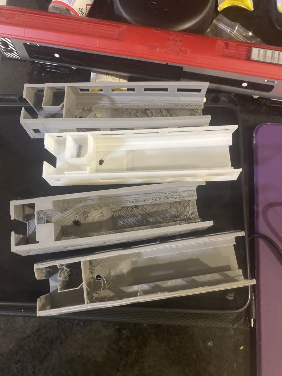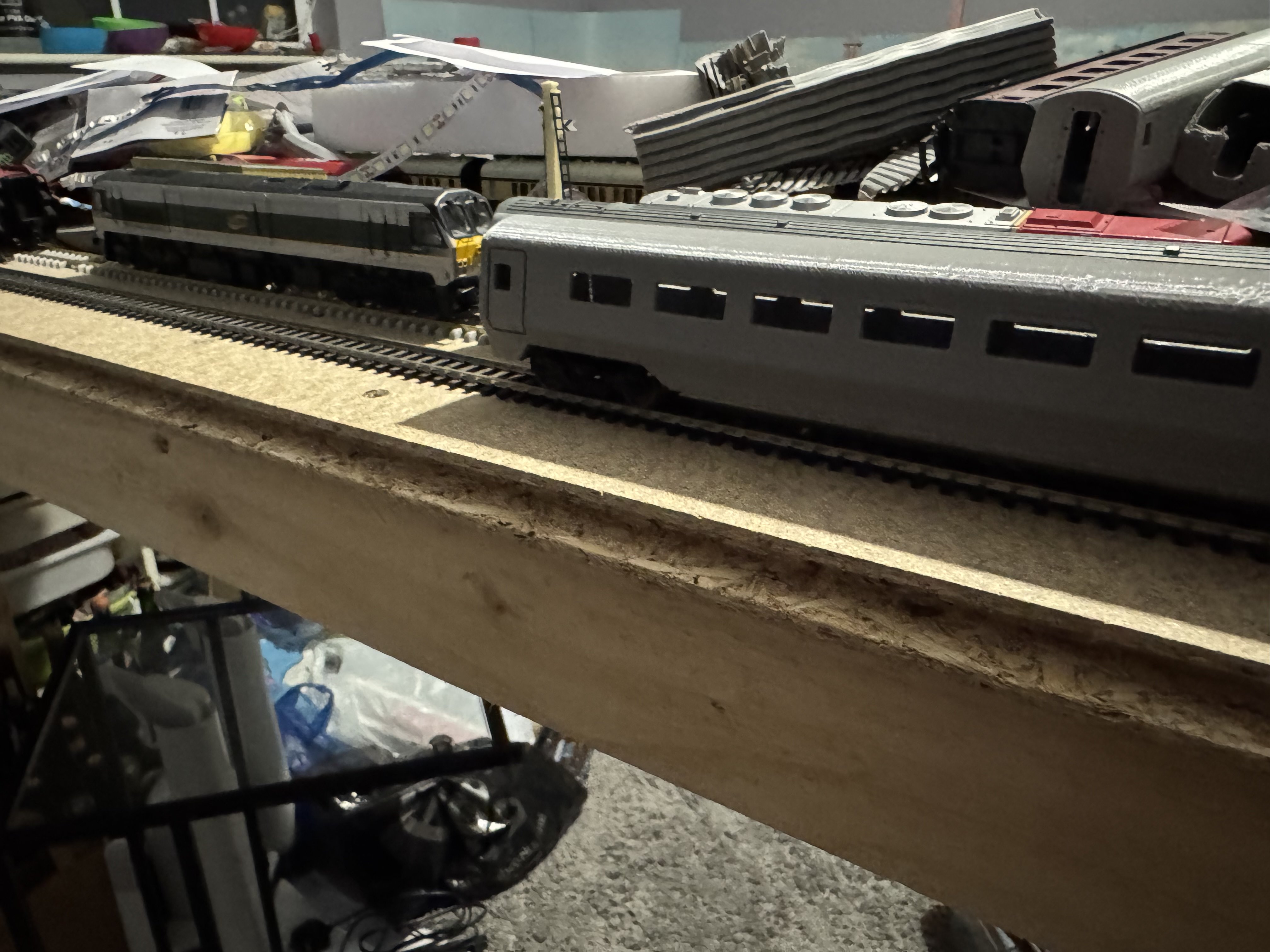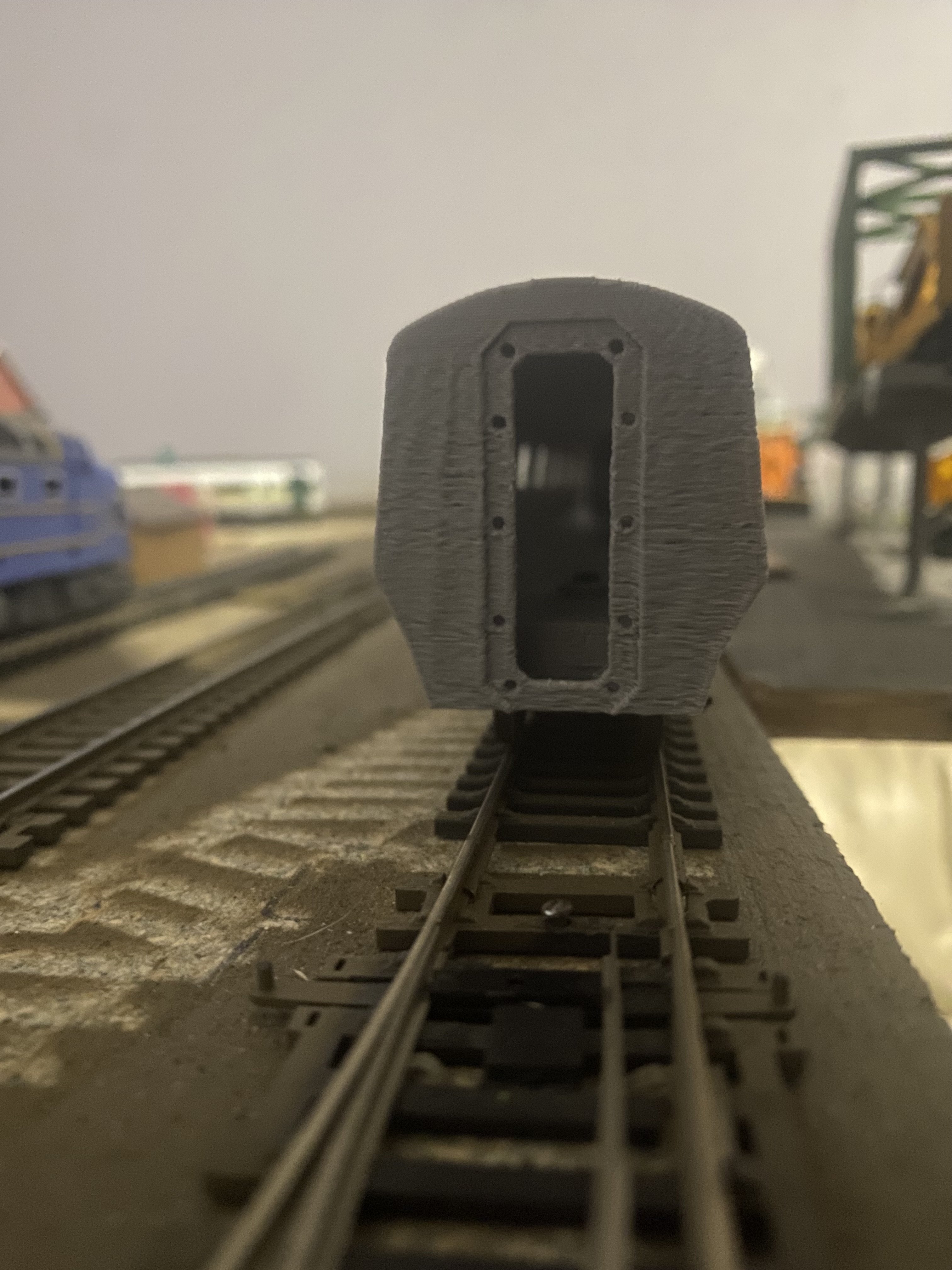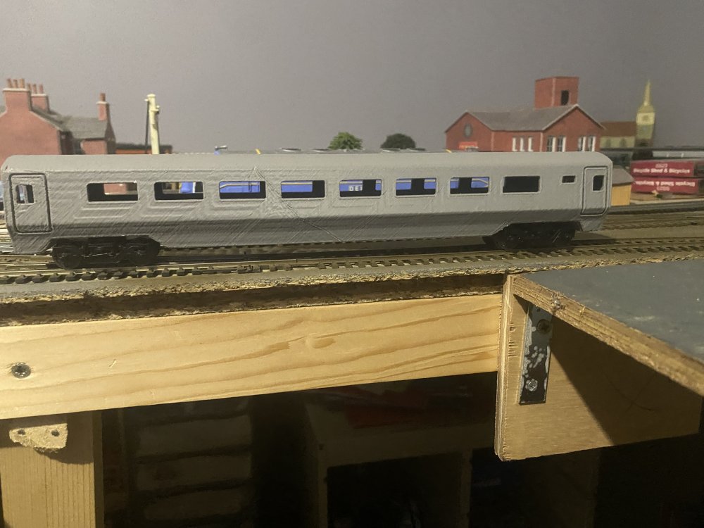 Here are the first prints I had done, attempting to print the carriages in halves and glue the together. This didn’t work with parts warping after being removed from the build plate. These videos are from the final, completed CAD designs. As it stands I am currently unable to print these as a whole entity but I’m looking into it and solutions for my second run of prints. My most recent print, a stronger and sturdier print. It is able to hold the bogies without the floor imploding, and I’m generally happy with the overall finish. I can’t reach the internals of the carriage so I will just post process (ie sand and paint) them and then use tint plastic to fill in any windows. I’ll do more updates and background info as I continue working on these! Note, I don’t know how to add the specific files in a specific order. The halves are pretty obvious as are the videos. The clear photos of the carriage by itself on the layout was my first ‘successful’ print, which has since imploded but is good test dummy for learning to spray paint. The most recent print is sitting beside the 201 on the messier side of the board. RPReplay_Final1753187001.mp4