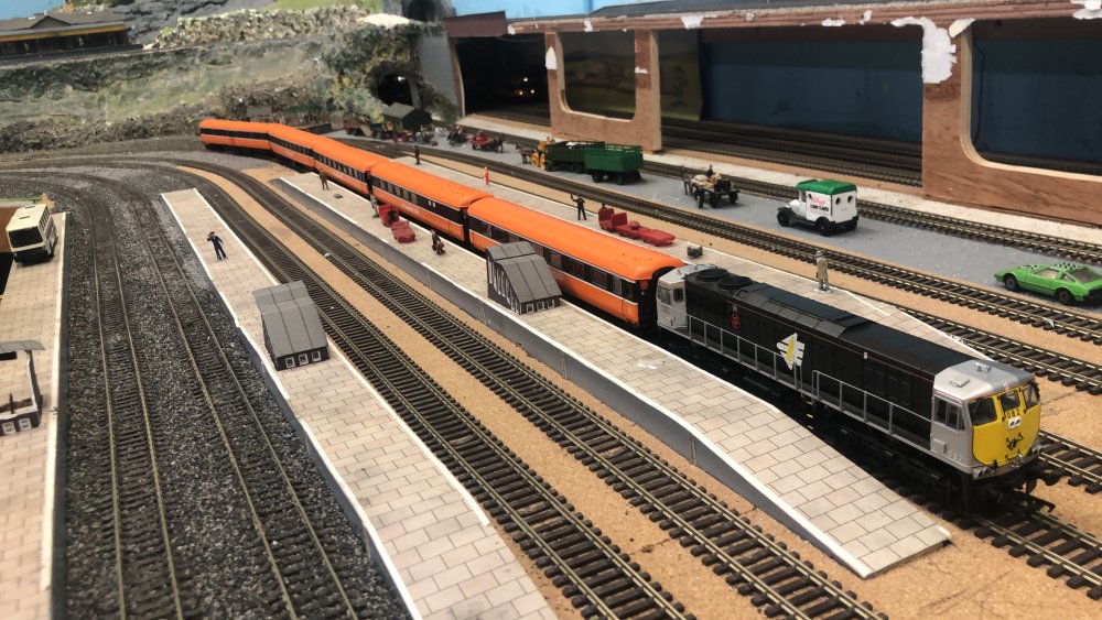 Hi Brendan Commiserations that you have a similar issue. The bogie which leaps off sets to be the trailing bogie of Car 3 (next to the trailing motor coach). As I said on an earlier post, it was really bought for the Glass Cabinet, so like you, I may swallow the issue. Of course, if I do build that SR layout it would be a station between two fiddle yards, so a nice straight shuttle arrangement for the $DD would work fine? As for Irish modelling being easier - IT IS if you model diesels - but steam IS A DIFFERENT MATTER. As almost no RTR steam exists, you end up with brass locos built from kits which need an Andy Candice, or a David Holman, or a David Richardson on hand to fiddle about with the things. THEY derail with impunity - mainly the leading bogies. Dr Edgar produced a working solution which has helped my S Class, but then there's the PPs (two) ALs (two, the Glover tanks (one quite well-behaved, the other two short out very happily), etc etc . Still, it's a nice problem to have - they look lovely just sitting around!!!!!