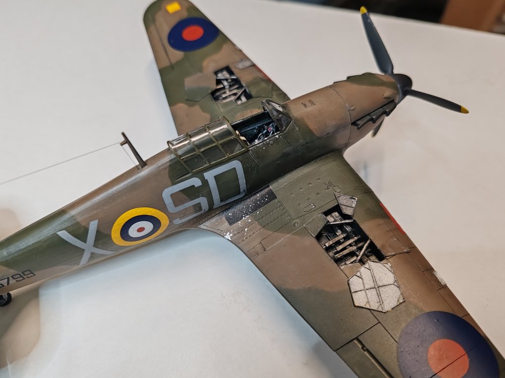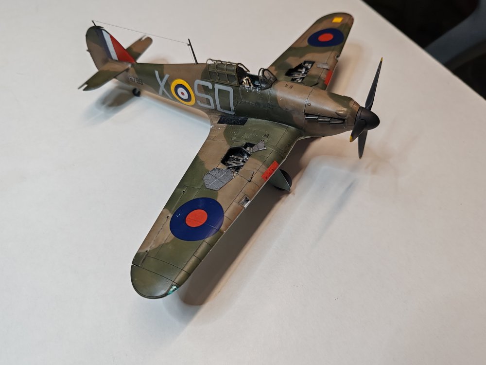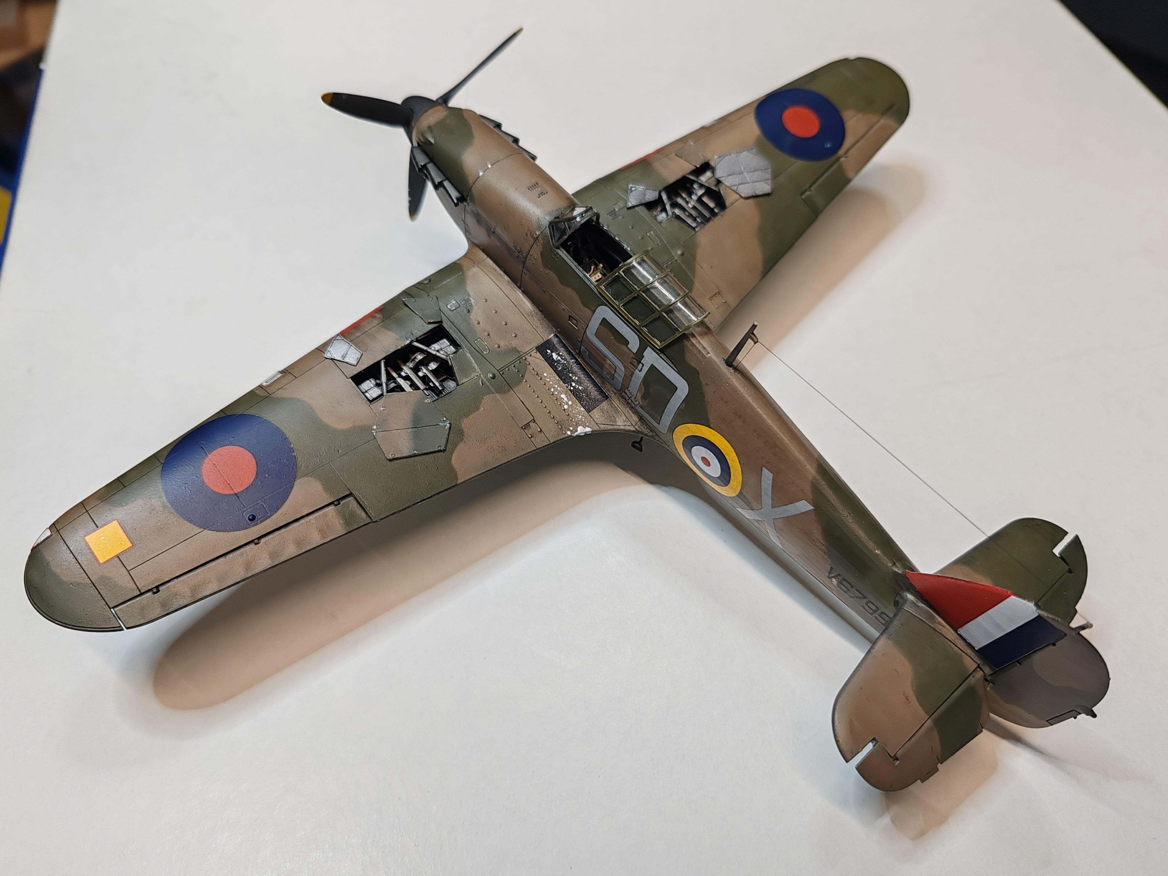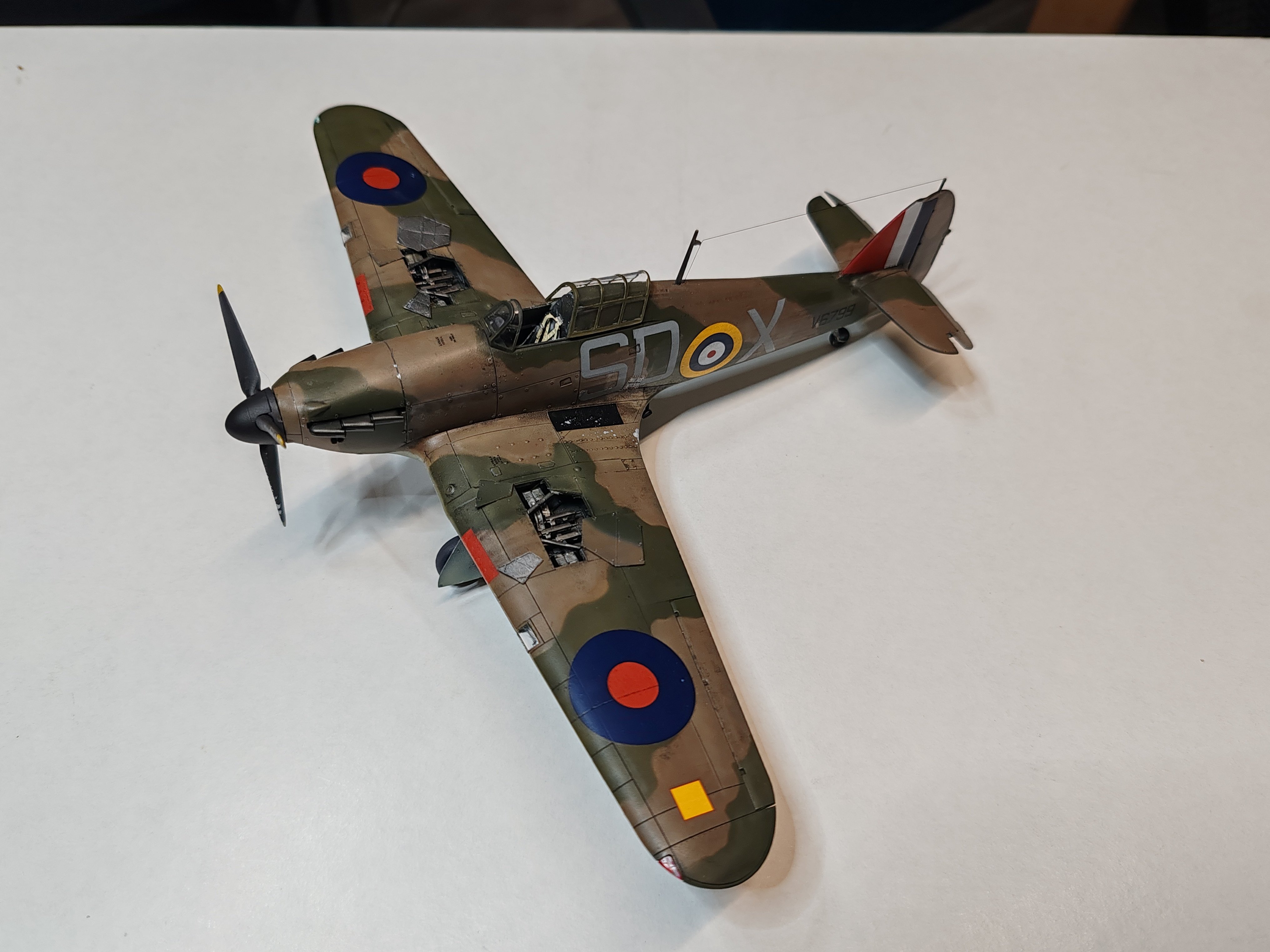 Airfix 1/48 Hurricane completed . Oct 7th 1940, Battle of Britain was nearing its climate, Pilot Officer Ken McKenzie (born in Belfast) of 501 Sqn, after expending all his ammo, he used his wingtip to knock the tail plane of a Me.109 causing it to crash into the sea. The RAF pilot made a forced landing near Dover. McKenzie eventually shot down 13 German Aircraft and was shot down in 1941, pretending to be mad was repatriated to England in 3 years later he died on 200 aged 92. Awarded the DFC he was a true hero.