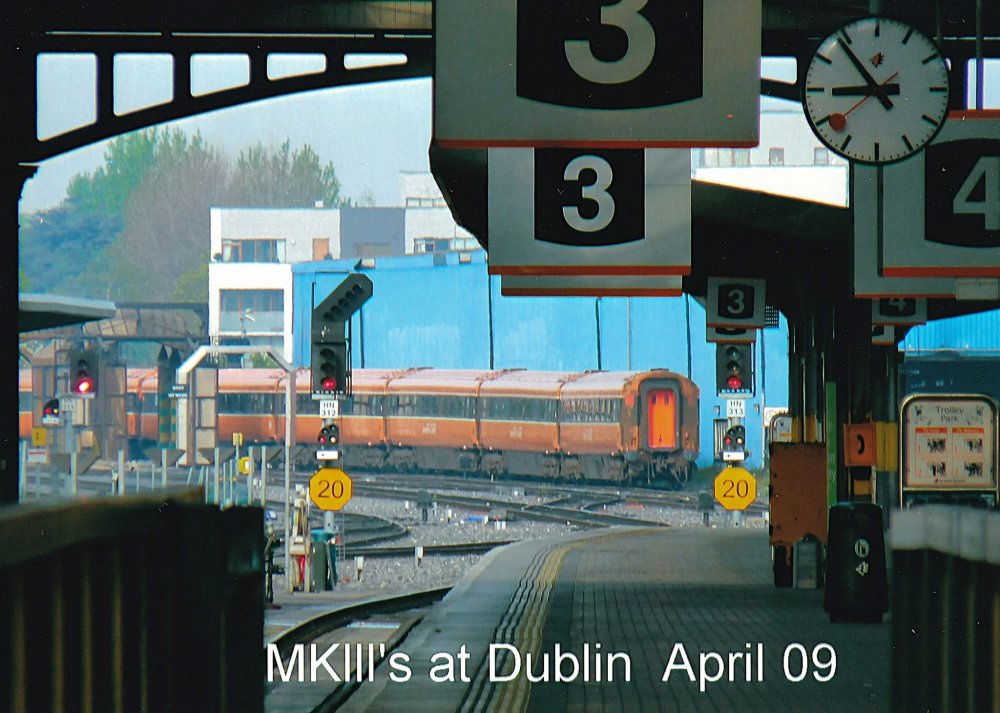 These Mk3s were purchased by Belmond for their Grand Hibernian luxury train-they were being shipped over to Scotland to be refurbished at that time in 2015, After Belmond finished here in Ireland in 2019-they were sent back again for another refurb job and are now part of the Britannic explorer train touring the UK-albeit not without their faults-they are currently back in the workshops for more attention.