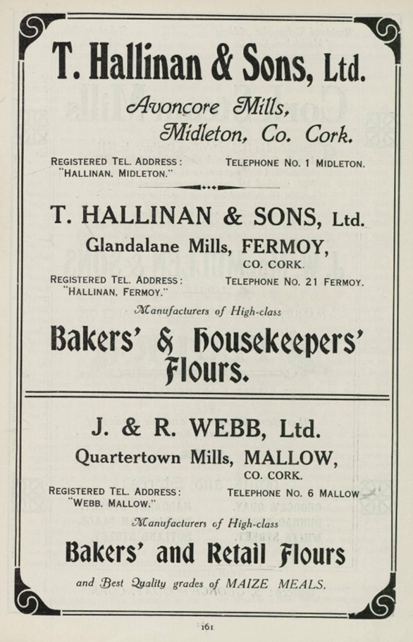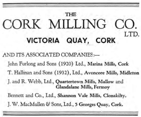 Searching the online Cork archives some more I came across this in an article on placenames in the Mallow Field Club Journal No 06 - 1988: Names like Quartertown, Gneeves, Lavally and Laharn appear to have originated from the application of the old Brehon-Law administration. Quartertown: A direct translation of the Gaelic ceathrú, i.e. a land measure, usually a fourth part or a quarter of a ploughland. It would be sufficient to feed 75 cows, under the ancient land assessment. So it's definitely an ancient name and you all got it right! Also, from Mallow Field Club Journal No. 01 - 1983, a reference noting that the branch opened in 1853, not 1864 as I had read elsewhere. If so, it was constructed at the same time as the Mallow-Killarney line which it branched from. This is part of a lengthy and detailed article about the history of the railways in and around Mallow: Mallow Field Club Journal No. 01 - 1983. - Cork Past & Present KILLARNEY BRANCH The Killarney junction Railway, in which the GS and WR, had invested, was sanctioned as early as the 16th of July, 1846, in anticipation of the main lines reaching Mallow. The route of the railway was to branch off near Two-Pot House and travel westwards on the northern bank of the Blackwater. This was amended on 24th. July, 1851, to state that the junction would now commence on the southern bank of the Blackwater adjacent to the Viaduct. William Dargan received the contract for building the Killarney Junction Railway for a sum of £375,000. Regular services between Mallow and a temporary Terminus at Freemount (28 miles) began on the 25th May, 1853, and on 15th July, the 41 miles from Mallow to Killarney were opened. The Tralee and Killarney Railway, sanctioned in 1853, was opened on 18th. July, 1859. By the 1880’s, there were usually five trains between Mallow and Tralee on weekdays and on Sundays. 1st. and 2nd. Class passangers could leave Dublin at 10.00 a,m. and be in Killarney at 6.00 p.m. 3rd. Class passangers arrived at the same time but they had to take the Parliamentary train which left at 7.00 a.m. A quarter of a mile from the junction with the main Dublin-Cork line, a siding was built into Webbs Mills at Quarter Town. An advertisement for the Mills in the Cork Examiner of 27th. May, 1853. two days after the opening of the line, states that, “Prime Flour, Indian meal and clean bran would be delivered in Cork, Limerick and all the stations on the GS and WR on moderate terms for cash.” [...] Early on the morning of 8th February, 1864, the 2.30 a.m. - the Mallow-Killarney night goods, consisting of fifteen wagons and two brake vans, was diverted onto the siding running to Webbs Mills. On this siding, the train came up against the wall of a corn store. The guard on the train suffered severe injuries. Photographs taken at the site of the incident are the earliest surviving pictorial record of an Irish railway accident or indeed of a steam engine on Irish soil. The siding to Webbs Mills was “spiked” (closed) on Sunday, 10th. October, 1976. And finally some printed advertisements: -