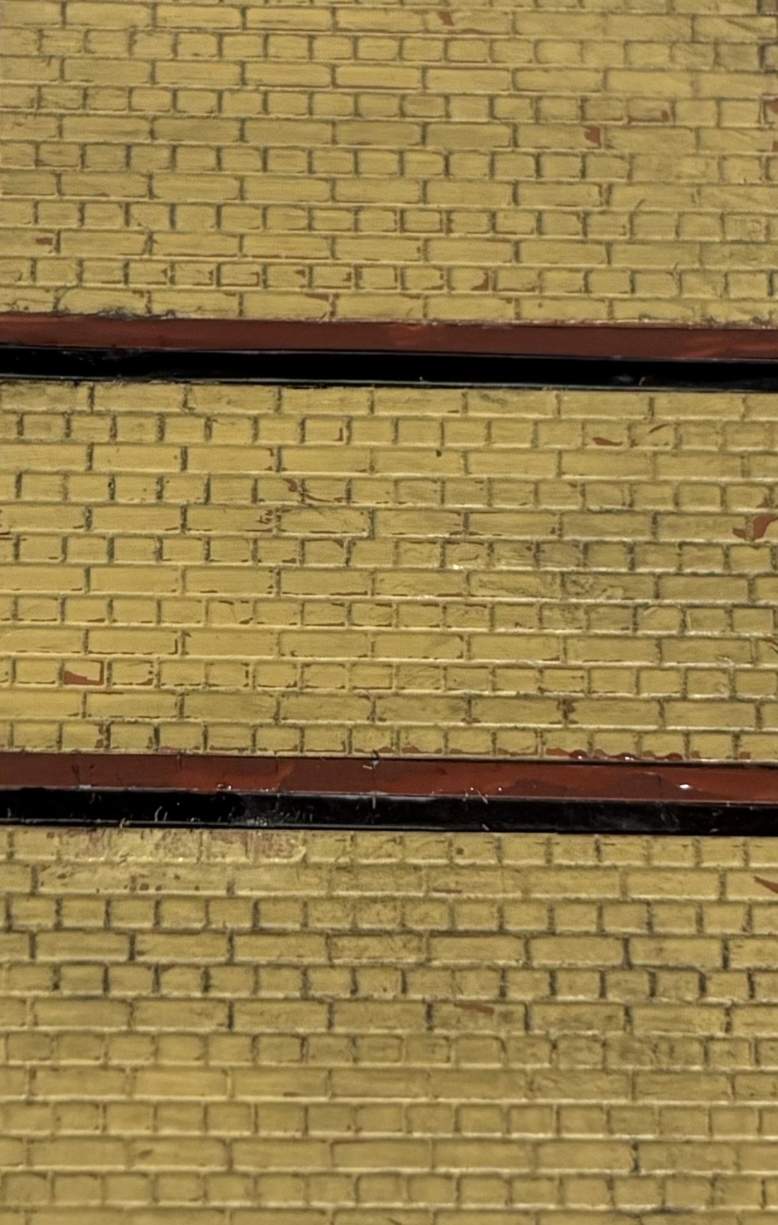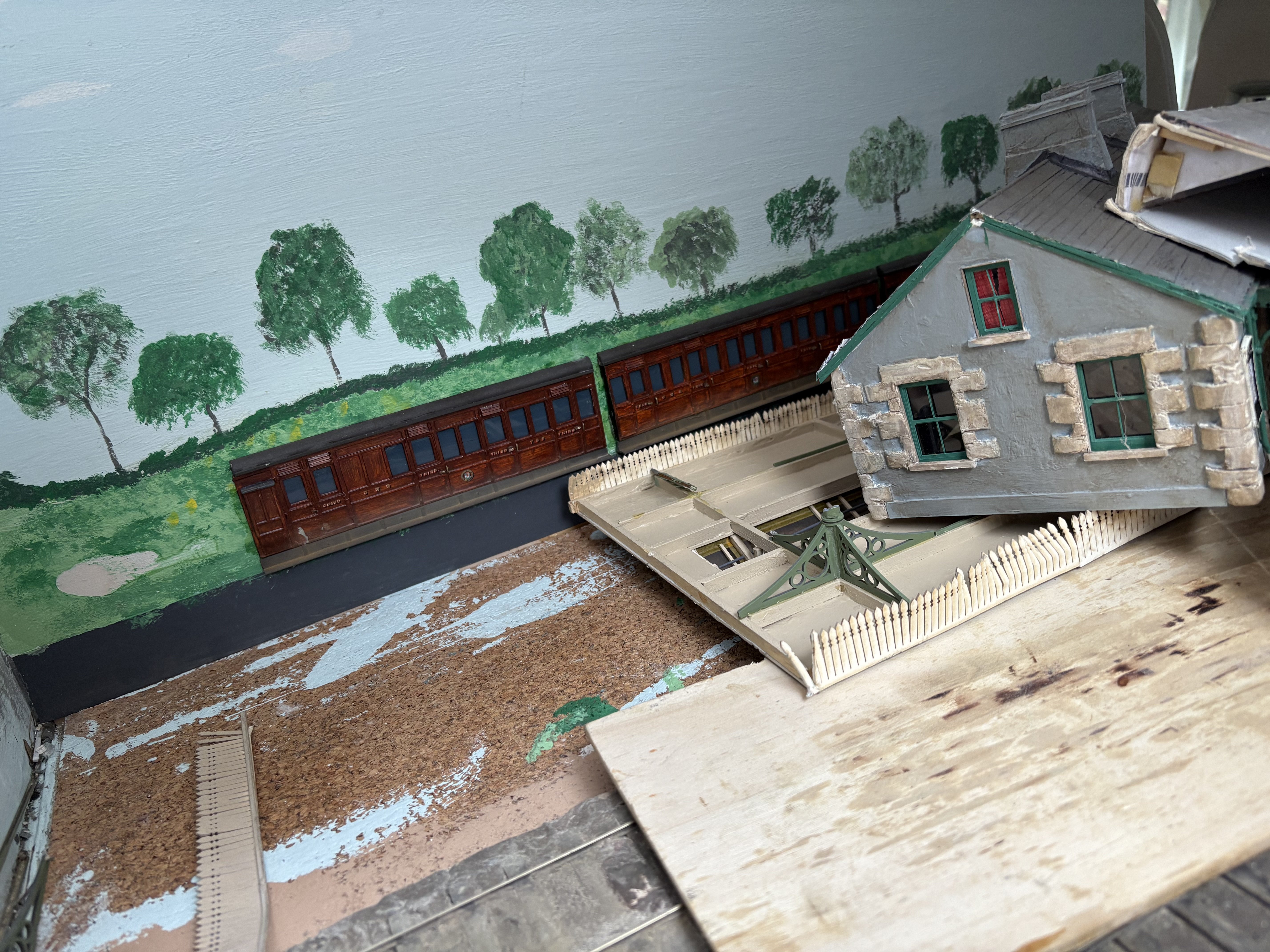 Well it’s Fare Thee Well, Enniskillen……the layout now resides in an Oxfordshire skip. Joined by my model of Florencecourt station, which never really satisfied me. Recent rolling stock purchases meant that the layout/diorama just couldn’t work (see how big the bogie coach looks on Northport Quay). So out it goes as I just don’t have space to keep it. It was a valuable learning experience though. I tried to salvage some of the canopy columns but they broke apart. This means that the next project will be a complete fresh start. It’s still gestating and I will do a proper post soon. However, a trial effort was made tonight on the brickwork that will be required…….