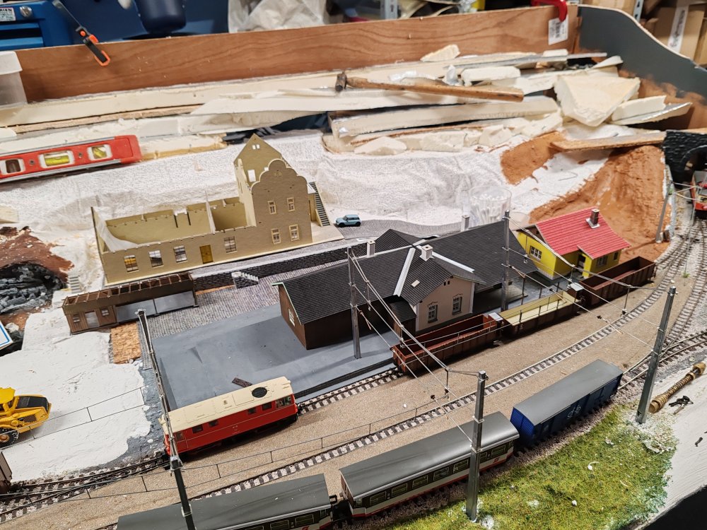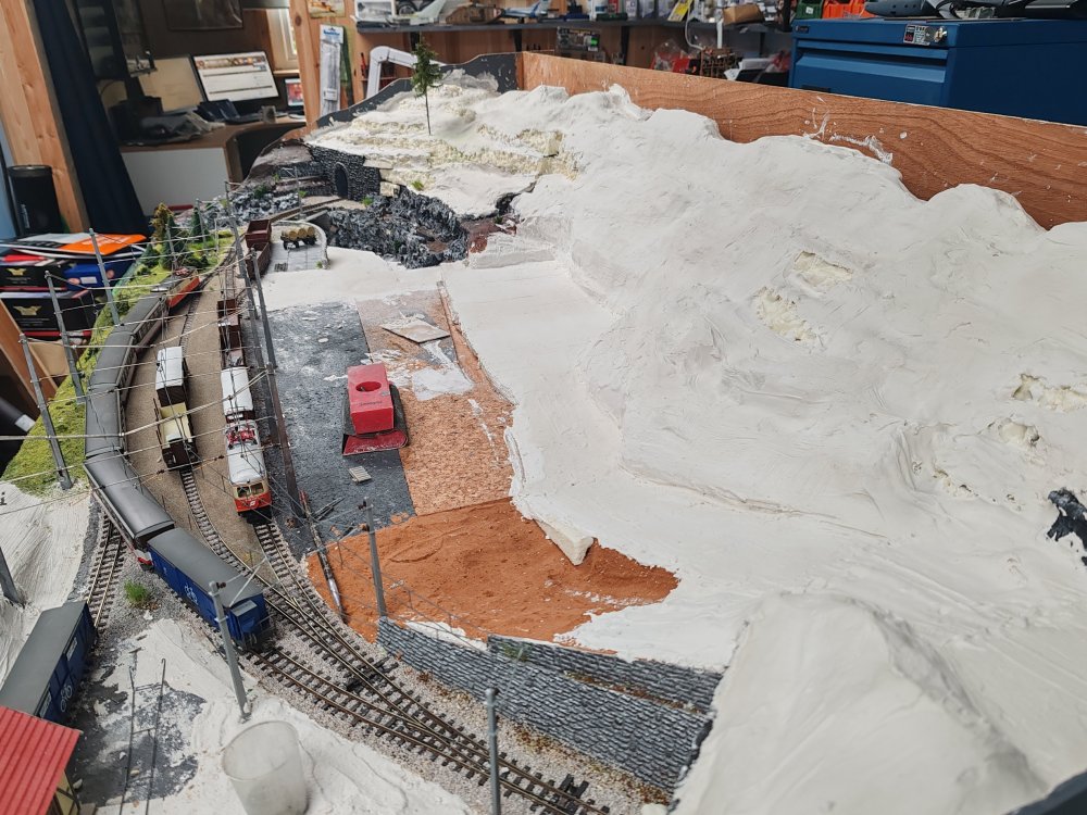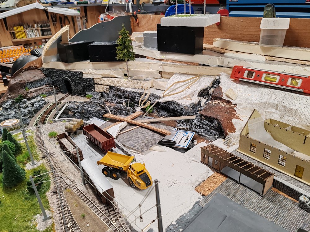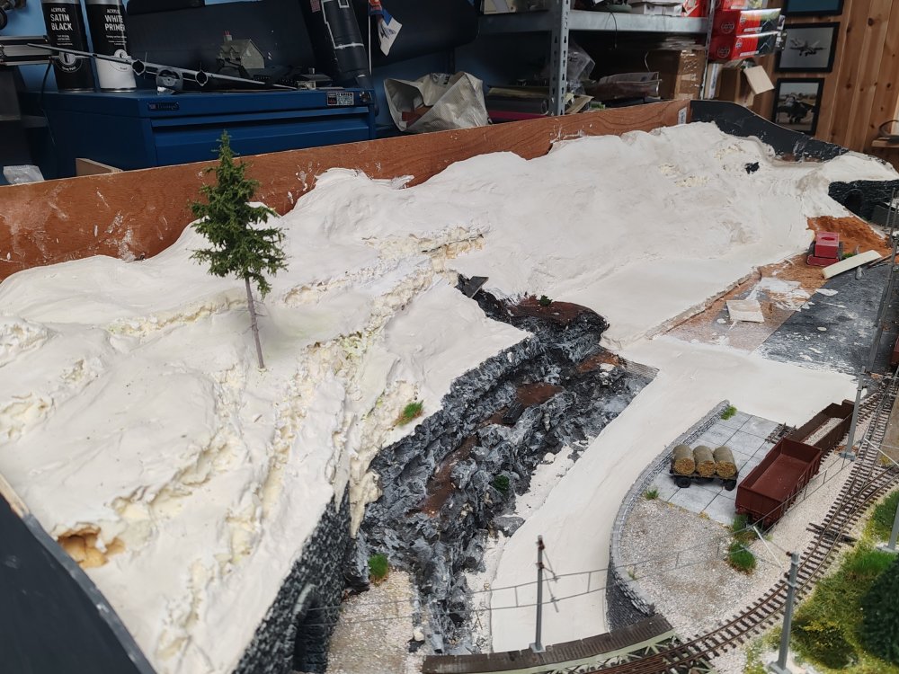 Scenery getting added slowly. Using wrinkle rocks By Noch basically a sheet of paper that u scrunch up. Its says these are UV resistant and they are a tad pricy for what they are. Look good though. -