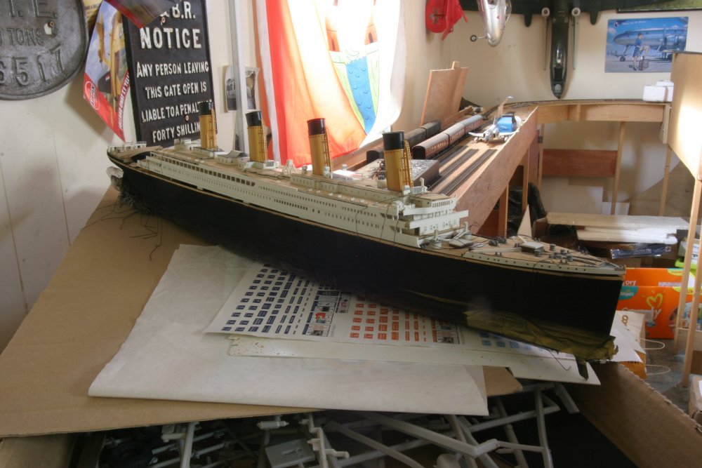 Started this one back in 2012 I'd say with the aim to have it done for the 100 Anniversary, Big fail. It is the Acadmey kit with Laser Cut wooden Decks Etch Hand Rails etc. heres the current status of the re start, bit of Rigging and the decks stuck together. Getting there!
