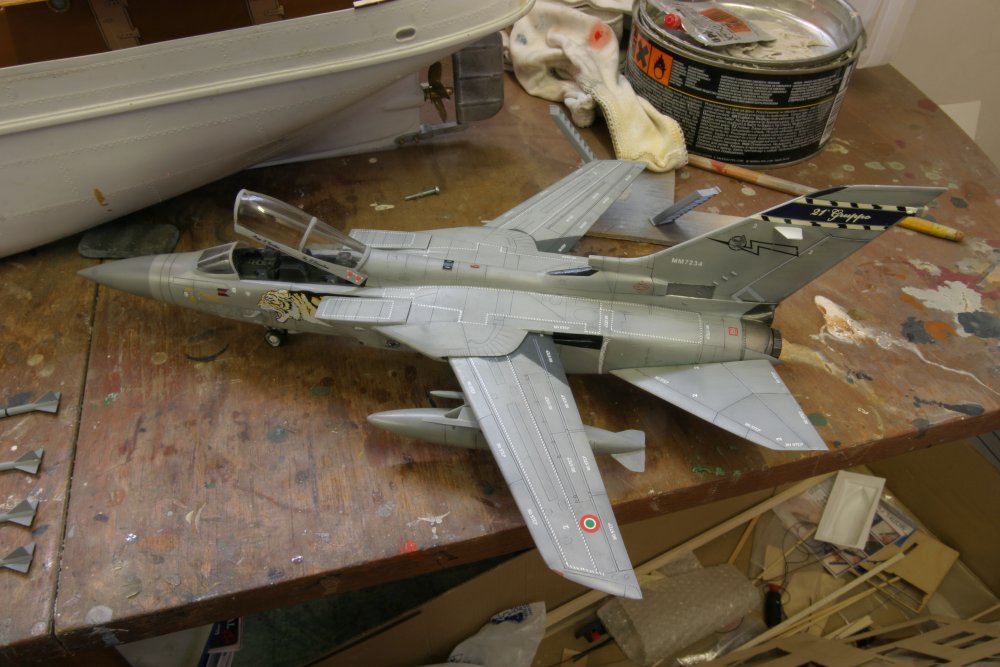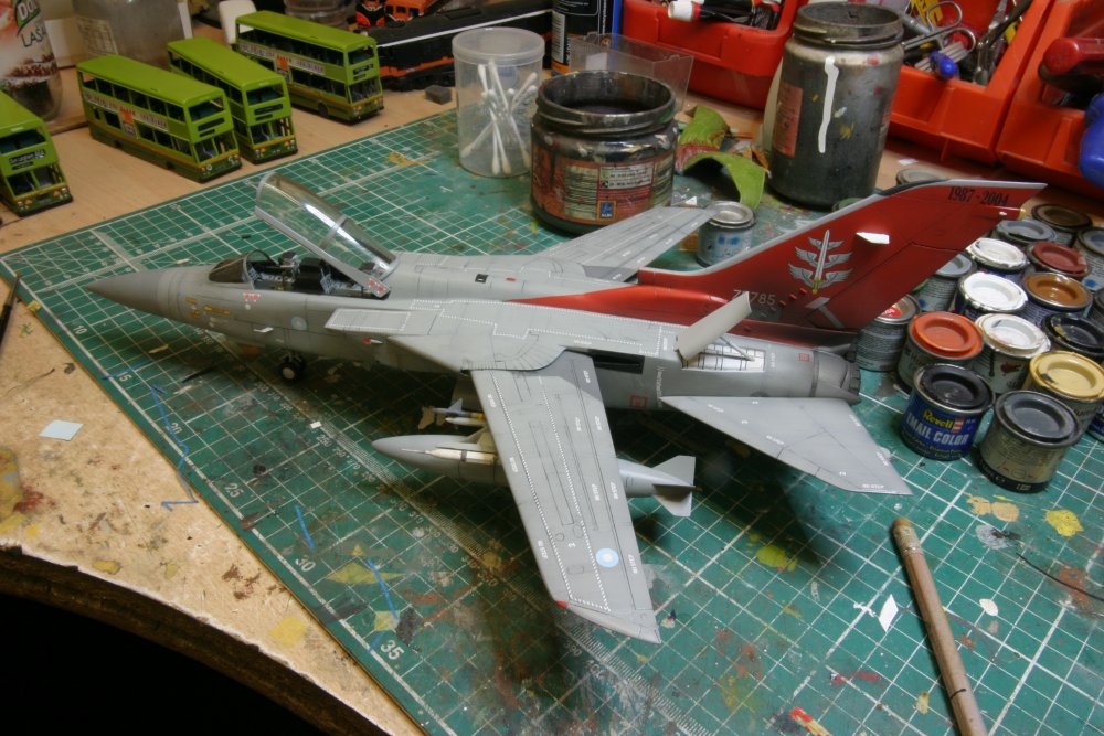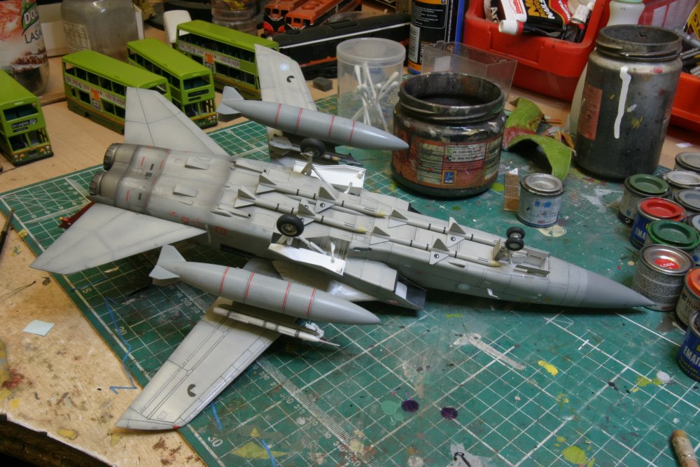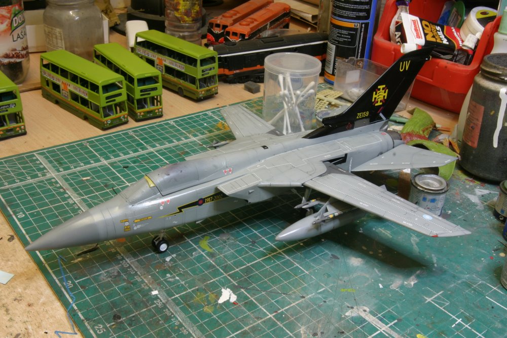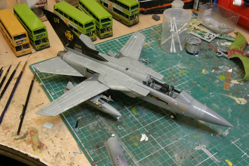 Bought about 6 of these from Marks when I worked there, these were like hens teeth for a bit and then Hobby Boss bring out there one and now Revell have a new tool out shortly so these are old hat now. These models arent the best some big errors that if you were an F.3 jock you would spot them a mile off but any way these were finished over the past year to get the Mojo working again. These are WIP shots I have yet to take some of the finished weathered articles. One is in 111 Sqn and the other in Air Warfare Centre (Red Tail) and the tiger one is Italian Air Force. These Jets are Sadly missed now.