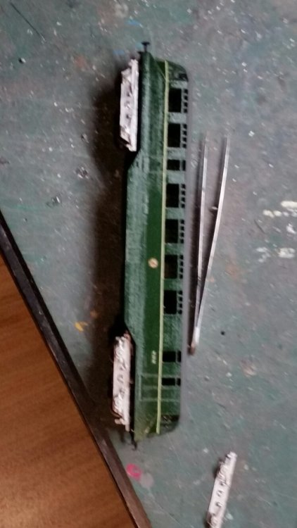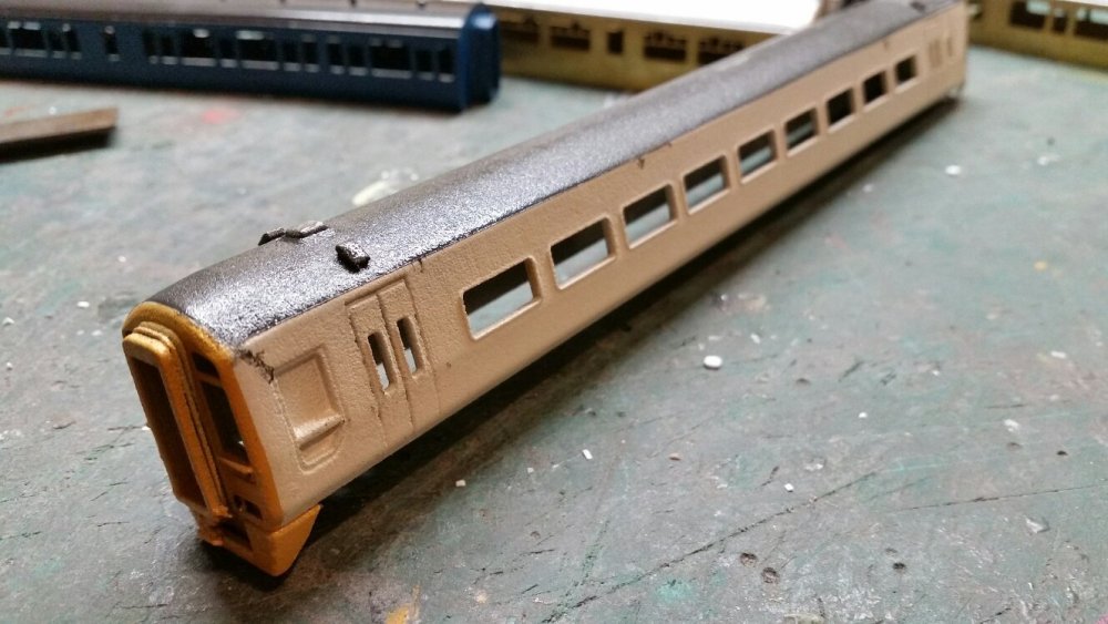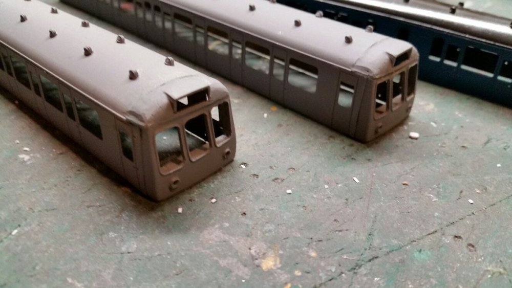Two pics for added value ( I hope) 117 dmu with middle car at rear in blue drivers still in primer with more work required on roof domes. The 158 is a 3 D print in the grainy style of old from Shapeways I will carry on with it but I think it is a bit dead in the water given modern print standards. Robert