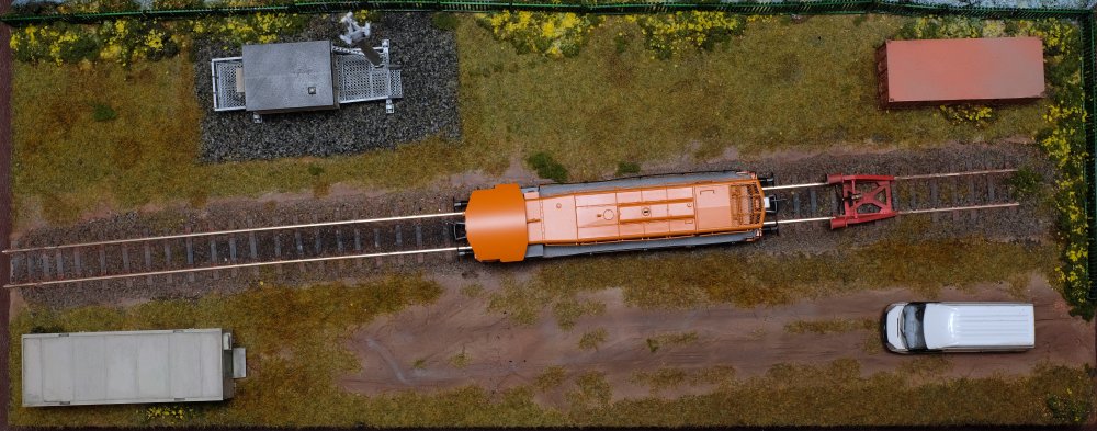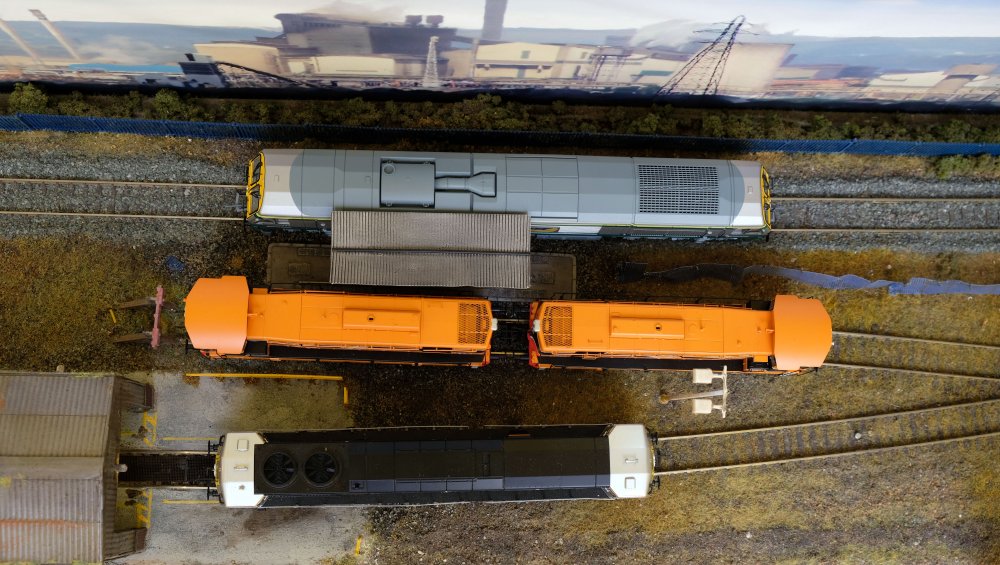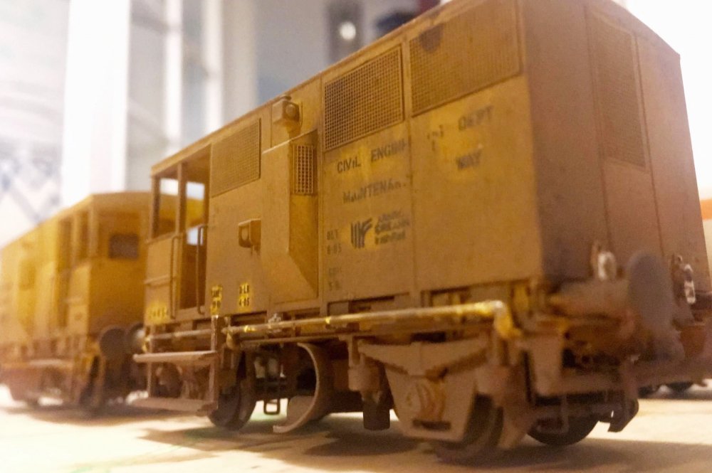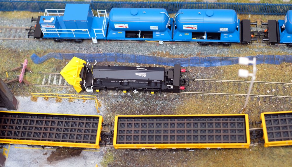 11. Ballast ploughs weathered, not particularly happy with the result as my usual method of a wash of thinned down matt cote and weathering powders resulted in the livery washing off the model!