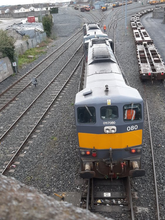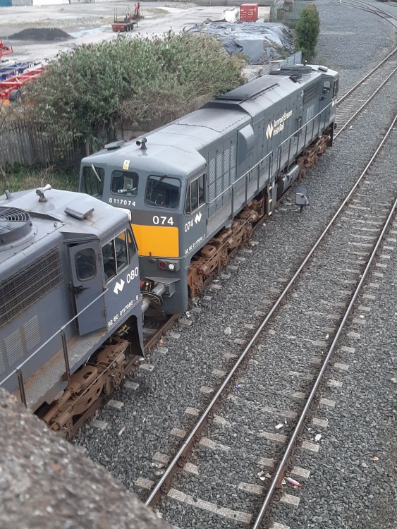 There was more 071's than you could shake a stick at in North Wall yesterday. 074 & 080 arrived together. A bit of shunting later, 076 & 080 left. 073 and another grey unidentified 071 were parked up. @DJ Dangerous would have loved it
