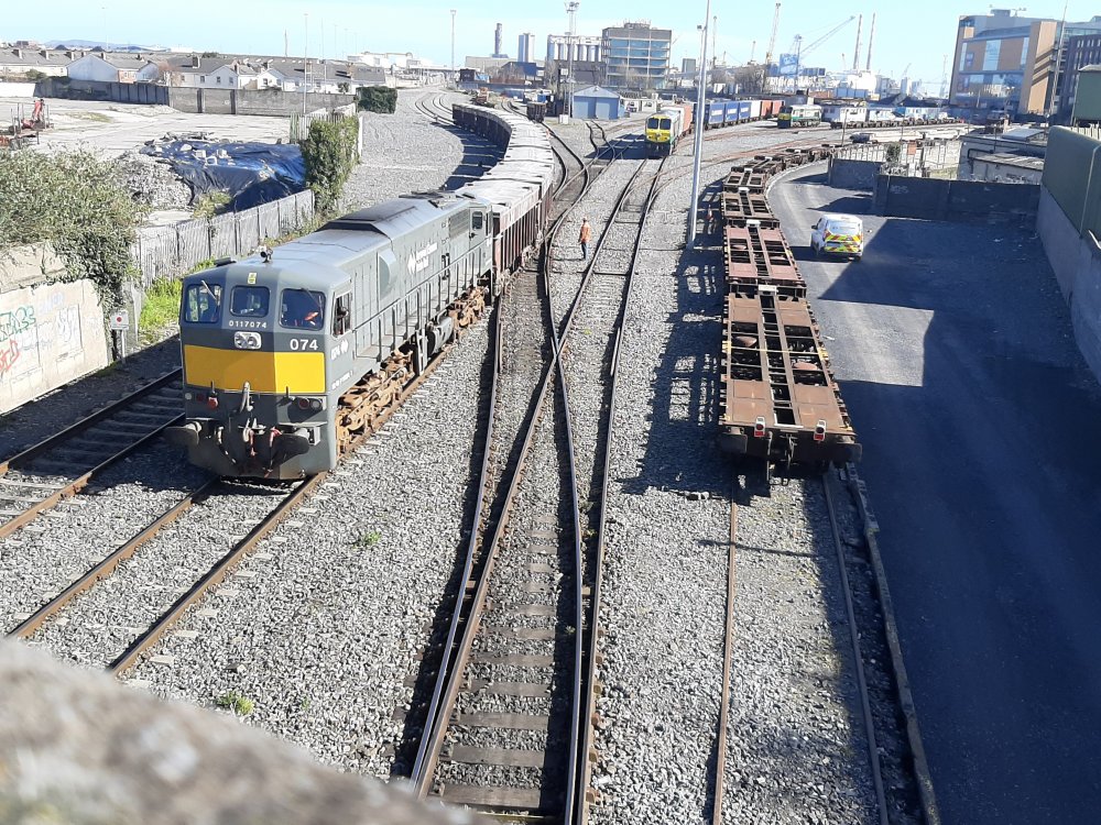 074 action at North Wall today @ 1.30pm with a 12 wagon Tara Mines set. Might be reduced action these days but still great to be able to see 071's and freight action.
