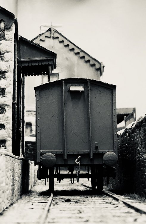 This is excellent stuff. I think one of the biggest mistakes we can fall into is over-compression of track plans - over- tight curves etc. This has huge effects on how ‘natural’ everything looks. I had to have a serious think about this for my tiny layout, and have tried to avoid it looking too track-heavy. I followed the advice about parallel track by gently curving my front siding and it makes a huge difference. I have miserably failed on the train length though - I’ll need one of these to do that ! (Image from Transports of Delight, SmugMug). A fairly limited palette of colours helps a layout blend in together and appear part of one big scene, rather than track and stock planked on a scenic board with no real connection to their surroundings. David is too modest - have a good look at his stuff, but also Gordon Gravett’s ‘Pempoul’.