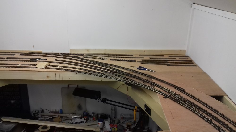 A wee taster of things to come... A rough back of a fag packet calculation suggests a smidge over two scale miles for a train leaving the station throat on the raised section, traversing the layout and returning...