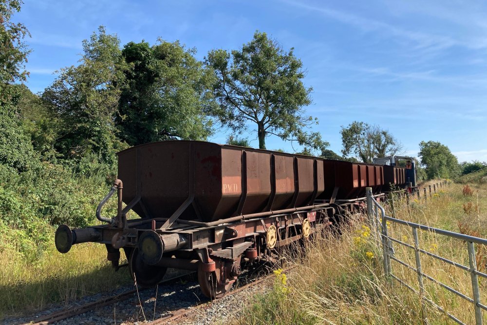 What a lovely sight... three new (to us) ballast hoppers and a plough van in 304.8mm:1ft scale at Downpatrick and County Down Railway. Pat and the crew have done a lovely job on these models, very convincing and with a fully working mechanism, though we can't find where to put the giant three feet wide DCC chip in the plough van. Thanks to Irish Railway Models and their customers this month for contributing towards the delivery costs, and thanks to the unnamed and clearly mad volunteer who paid for the wagons (though he didn't fancy paying postage & packing). There's more photos on our Facebook post here.