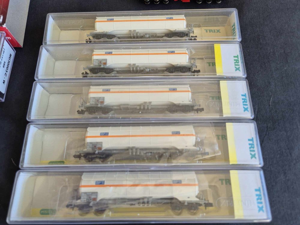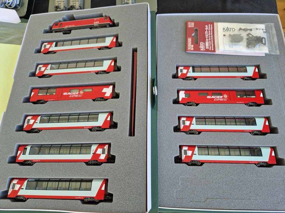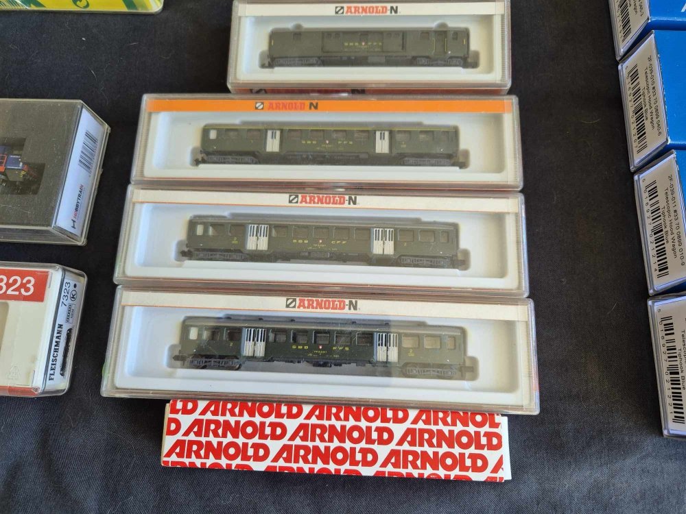 Looking to move on all of my N gauge Swiss stock to fund some more OO Irish gear. I'm based in NZ but travelling home later this month. Models available in Belfast from 01/07-04/07, West Clare for the next 3-4 days and Dublin until 19/07. Cash and pickup/drop off preferred but could look to arrange delivery once over in Ireland. List and photos below. All locos DC and have been tested and run this year. Otherwise have sat in boxes in storage. The yellow triple bogie coil carries do not come with a box and 1 unit has a coupling missing. The AM840 has some red cab end damage per below photos. Individually sum up to €1270. Offering them as a single lot for €1,000. More photos and info available on request. Please let me know by 21/06 of any interest otherwise I will not be bringing them home with me. Locos Kato Glacier Express 1 x Loco and 6 carriages € 150.00 Kato Glacier Express 4x carriages € 60.00 Fleischmann 7323 1 x SBB Class 481 Electric Loco € 150.00 Hobby Train H2951 1 x SBB Cargo AM840 - Red cab end Damage € 200.00 Minitrix 12862 1 x SBB 460 4/4 € 200.00 Arnold 2415 1 x SBB RE 4/4 € 100.00 Wagons Trix 15197 5x tank wagon € 100.00 Fleischmann 838812 2x Pair of Steel Carrier Wagons € 50.00 Modelbahn Union UM30003-C-W 2x Steel Carrier Wagons - Weathered € 50.00 Dapol 2F-039-009 / 010 / 011 / 012 4x Telescopic hood wagon € 100.00 Lilliput 235775 2x Sliding tarpaulin wagon - one coupling missing € 30.00 Carriages Arnold 3715 1x SBB 1st Carriage € 20.00 Arnold 3716 2 x SBB 2nd Carriage € 40.00 Arnold 3713 1 x SBB Luggage Van € 20.00