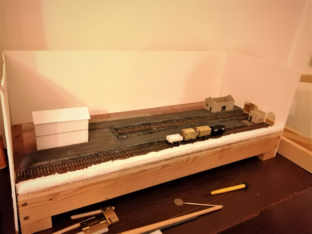 Ah! well, if we're including "ongoing thingy stuff" in the mix then does my 2mm scale version of Dromahair qualify? 2 ft long and 10.5mm gauge. Hopefully the start of something bigger. Apologies for the poor photo, the layout is currently residing in an unlit corner.