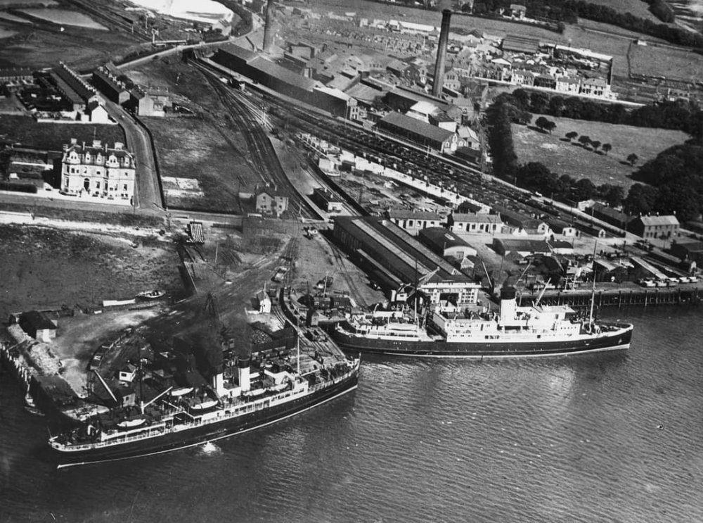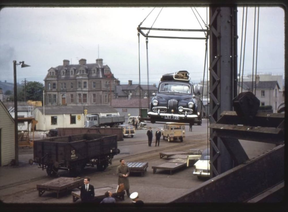Larne Harbour, 1961. Car (a Wolseley 1500, I think), being loaded unto ferry. Olderfleet Hotel in background and glimpses of the Lobitos storage containers in the background to the right... ... and a much earlier photo, narrow gauge still in place and no Lobitos. Area of my model, basically upper left hand quadrant.