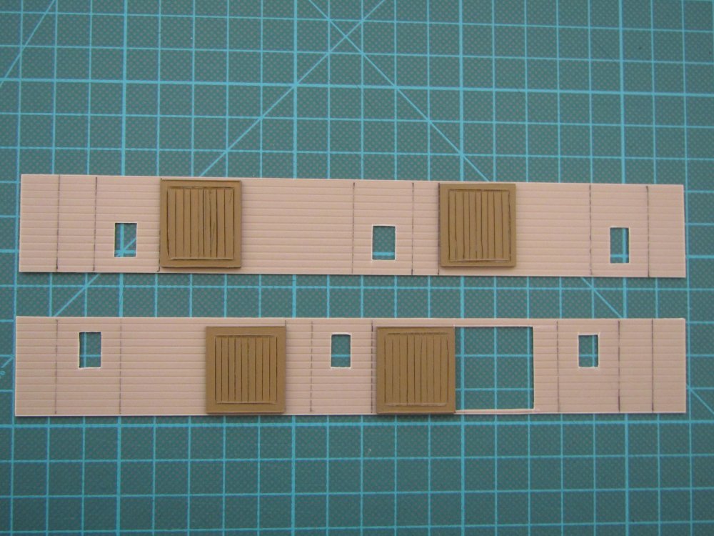 Firstly, I never imagined that I would be posting a topic on the Workbench Forum! I am constantly amazed by all the masterpieces that appear here, especially those super brass steam engines and Victorian carriages, BUT, having discovered the GNR(I) 'P' Van and it's typical 1960's roster, being taken off the 3pm ex Londonderry at York Road and attached to the 5:30pm ex York Road to Larne Harbour, with mail for Stranraer, I have become intrigued and want to model it's authenticity and unique links with Larne Harbour. My aim is to model one of the 1934 built P2 Vans (783 - 788), actually 788 as a tribute to it as it still exists, albeit in a derelict and forlorn state at RPSI, Whitehead. I intend to leave one of the doors open and have the van sit in a siding at Larne Harbour with mail bags being unloaded for transfer to the Stranraer Ferry. Many thanks to MikeO and Leslie McAlister who provided a lot of detailed information and Lambeg Man and airfixfan who posted photos when I asked a question on the Questions and Answers Forum about the 'P' Van. I have also unearthed a few photos in various books. After lots searching, I came across a Southern Railway Bogie Parcels Van (Ratio Kit 592). This will help with the chassis, (slightly oversize, but easily adjusted to exact), and bogies, and the body will be entirely scratchbuilt with Slater's 2mm (6 inch) Embossed Planking and plain 1mm and 1.5mm Plastikard. So here goes, first tentative steps, the first cuts: and the four doors and two ends, I wanted to have the planked ends, as per the official GNR(I) drawing, even though some photos seem to show plain smooth steel ends: and the cut for my open door, difficult to get correct, but I'm happy with it! More photos of progress to come soon, hopefully............