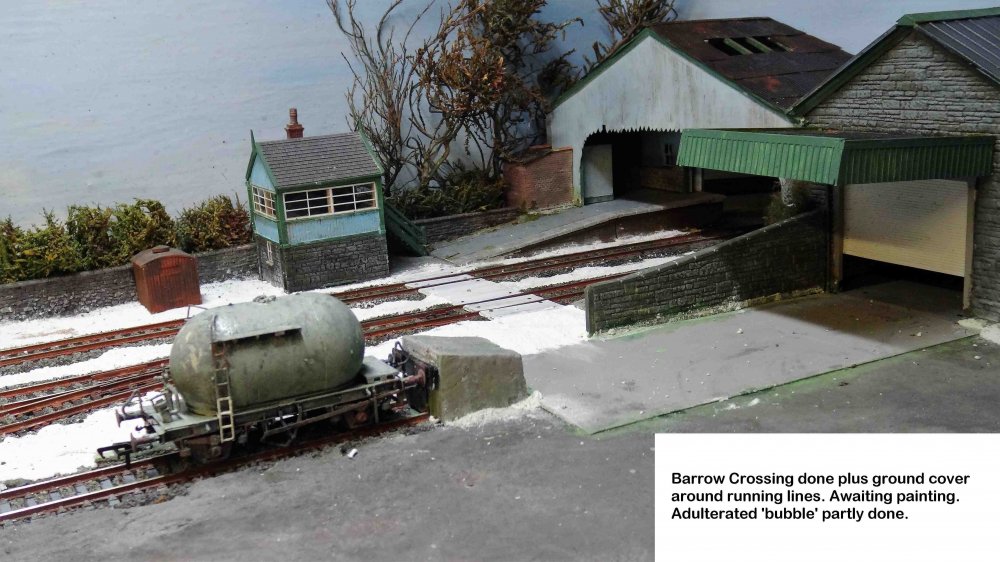 I prefer to use it, as a.) Its easy to lay, has a 'built in' 'shoulder' , b.) Using loose ballast plus PVA or similar adhesive; this tends to get in the points etc and affects the electrical contacts, and most importantly c.) doesn't fall off when moving boards or even more importantly falls off on the carpet thereby causing a hiatus in marital harmony! The weathered bubbles are a marriage between the Dapol Prestwin chassis and my son Alan's designed 3D printed Shapeways Bubble mouldings. He built and weathered them and amongst the weathering material was some toothpaste! One or two developed an interesting green mould on this over the years. Yesterday I took the plunge and started similar heavy weathering (less toothpaste) on an IRM bubble. I think I hear cries of 'Sacrilege' but that's the way I remember them.
