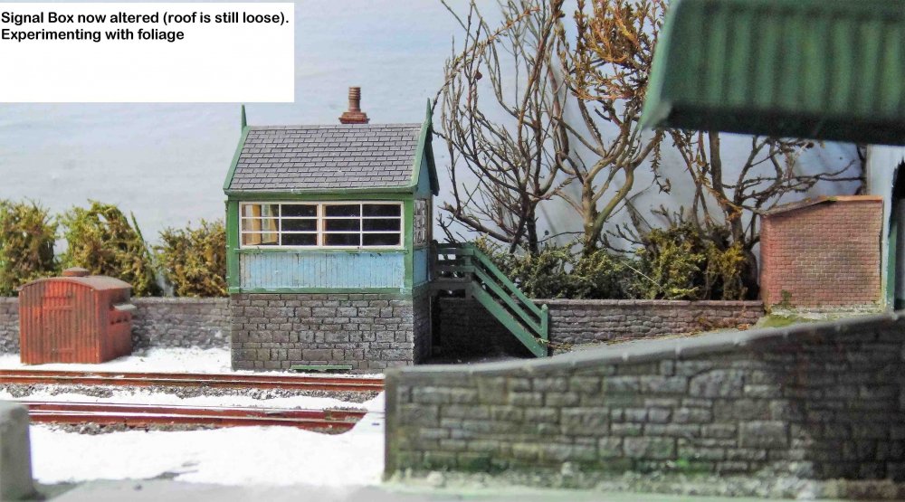 On my own today for a few hours so a bit of progress. The time of year is supposed to be Autumn so I can have a variety of greens and browns. The trees are heather which has been lying in the loft for some 6 years and whilst it is quite brittle Haltwhistle and the surrounding countryside's main contribution to nature can easily be re-plenished. It is probably somewhat over-scale. The box needs an interior.