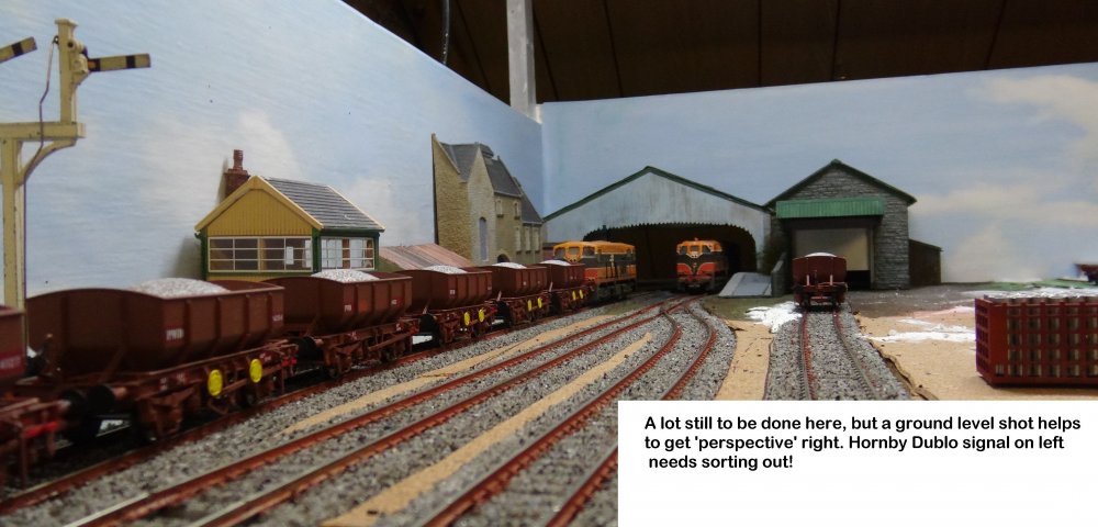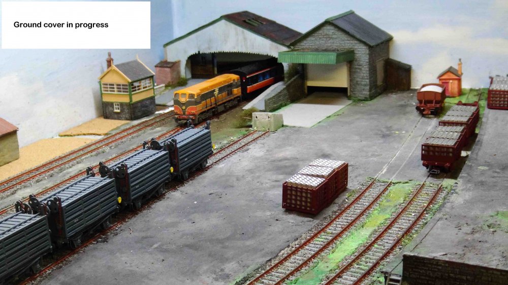 Not Glengarriff! but another old modelling photo which might be of interest I have just come across . 7mm O gauge PP & JT outside shed based on Enniskillen GNRI shed . Most of the stone/brick work on the shed front was made from individual pieces of plastikard. I must have had more time in those days - working full time and with 5 bairns, 2 dogs, rabbit , Guinea pigs, ferrets and rats and the wife to keep amused! (ER not necessarily in that order- nearly shot myself in the foot!) Ernie