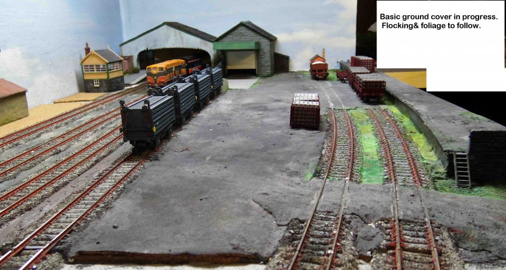 The ballast is Gaugemaster GM200 ballast underlay which you have to lay under the track as you lay the track down. Its is far less messy than trying to ballast the track with loose ballast/glue etc. You have to cut the strip when laying it under points but its quite easy after a bit of practice. The rails were painted after the ballasted track was laid.