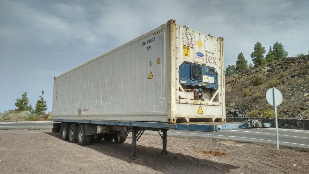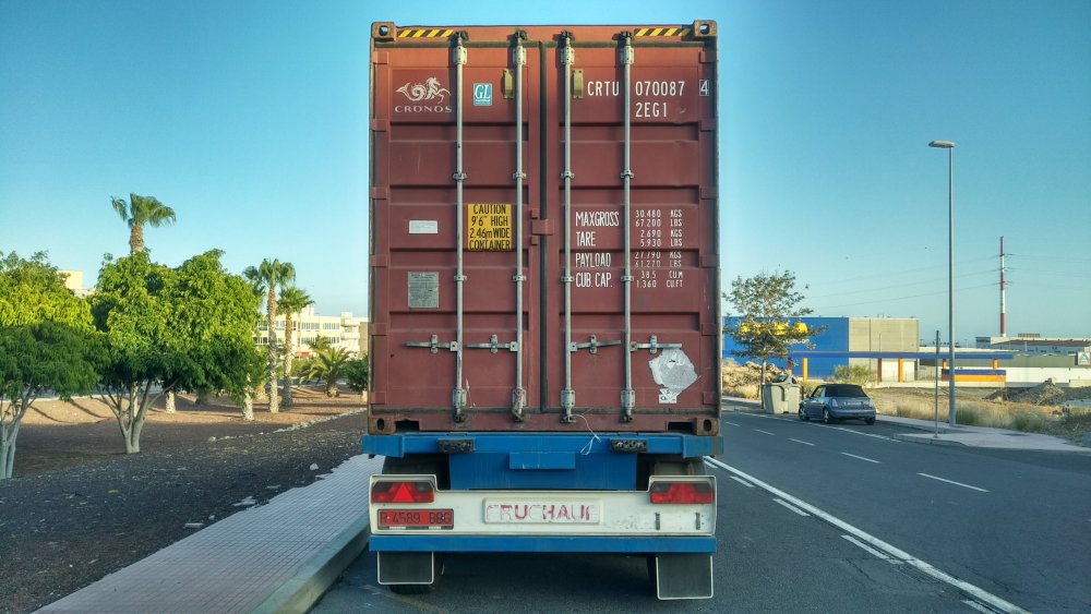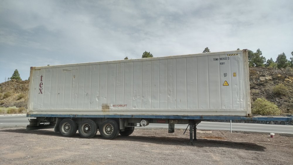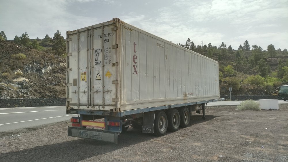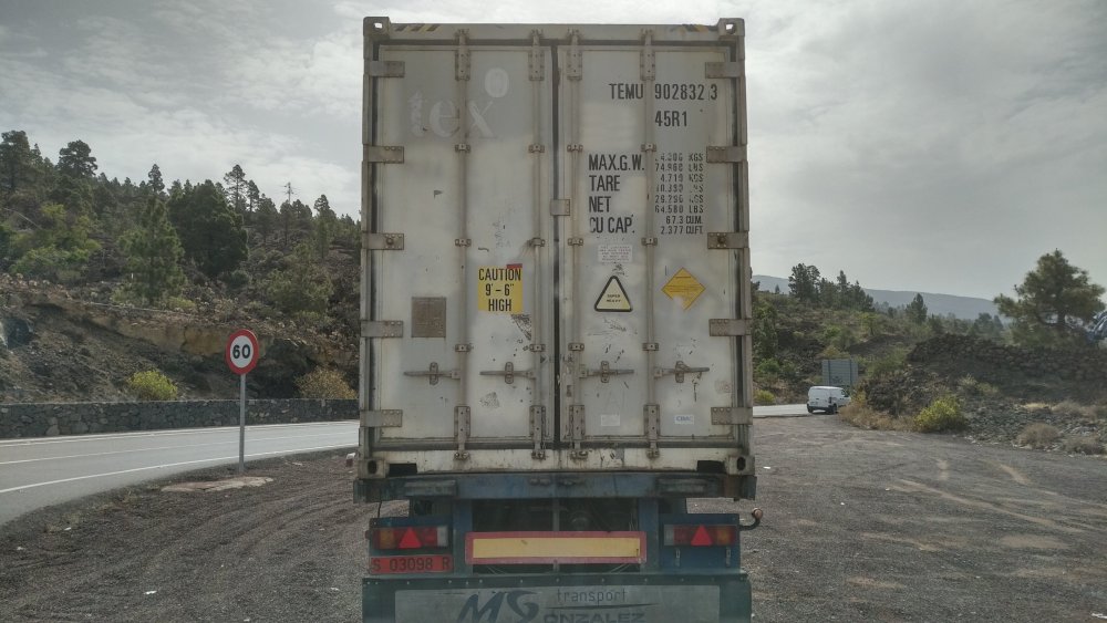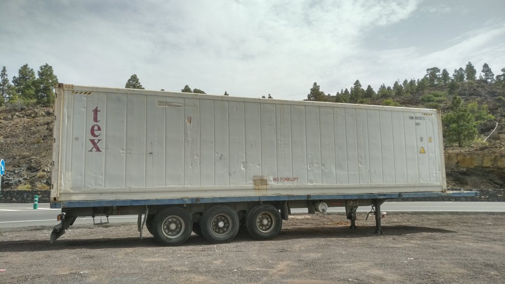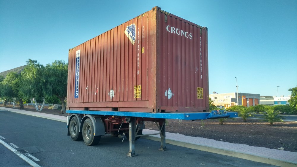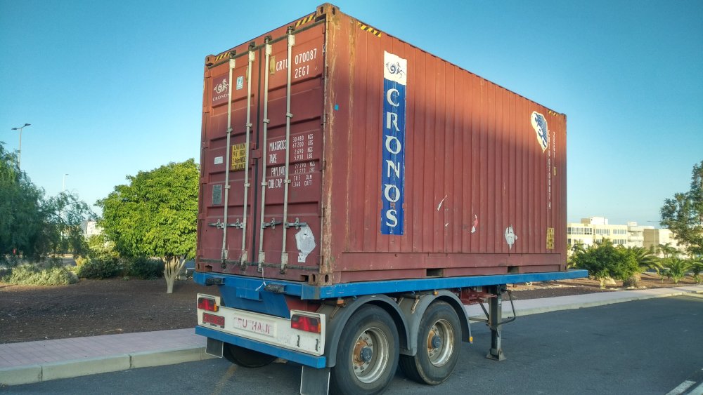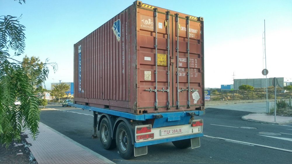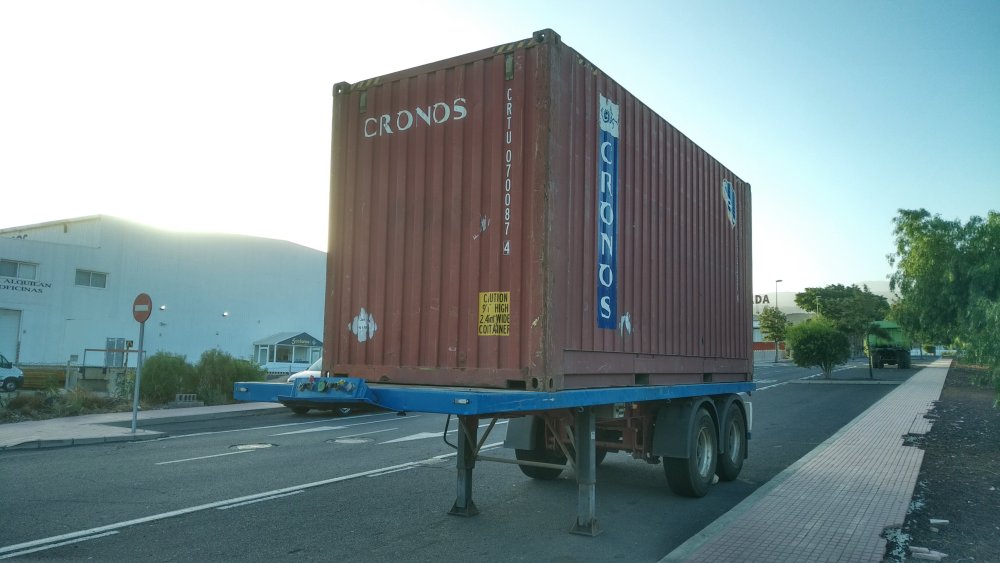 A Nice Cronos 6,1m x 2,9m / 20' HC (CRTU-0700874) near IKEA in San Miguel back on Tuesday 22nd. Container hotspot there, almost always something interesting. Have a few more since then to add as well. Trailer looks to have an extra metre or so to spare, wierd length for a trailer, no? -