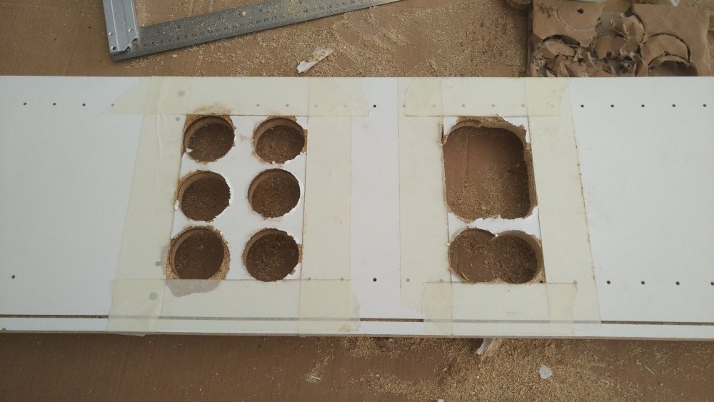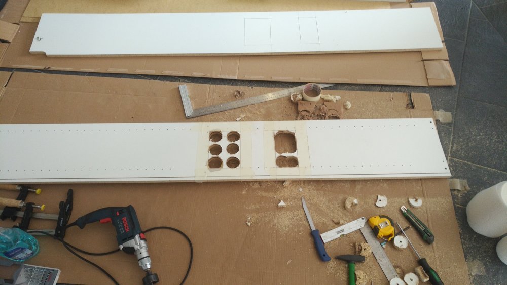 Mad dash to La Laguna for a replacement, back down south by five, measured, marked, scored, drilled, cut and cleaned, ready to pack up again and take home for trial and assembly...