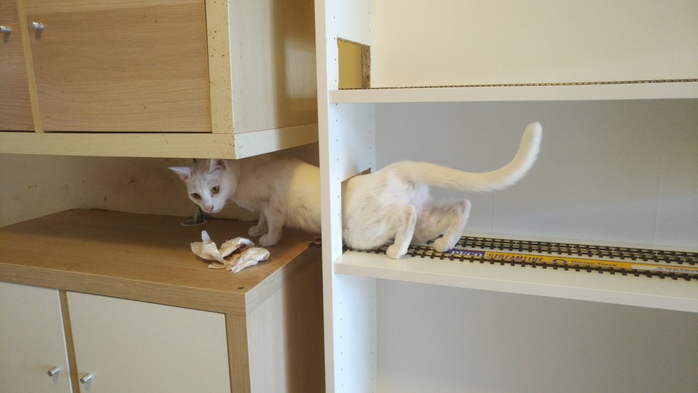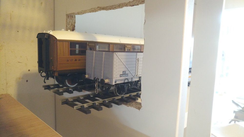 We have clearance, Clarence! Both O Gauge and OO gauge holes seem appropriate for what I'd wanted, at least for now. O Gauge feline is a tight fit but somehow squeezes through. That's all for now, duty calls...