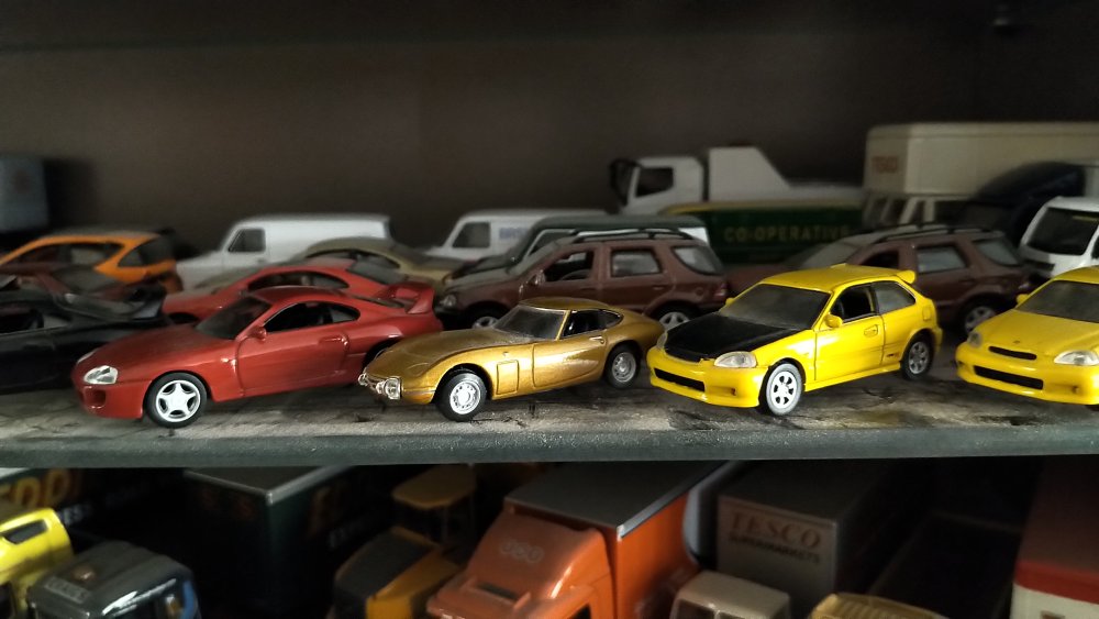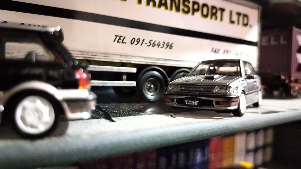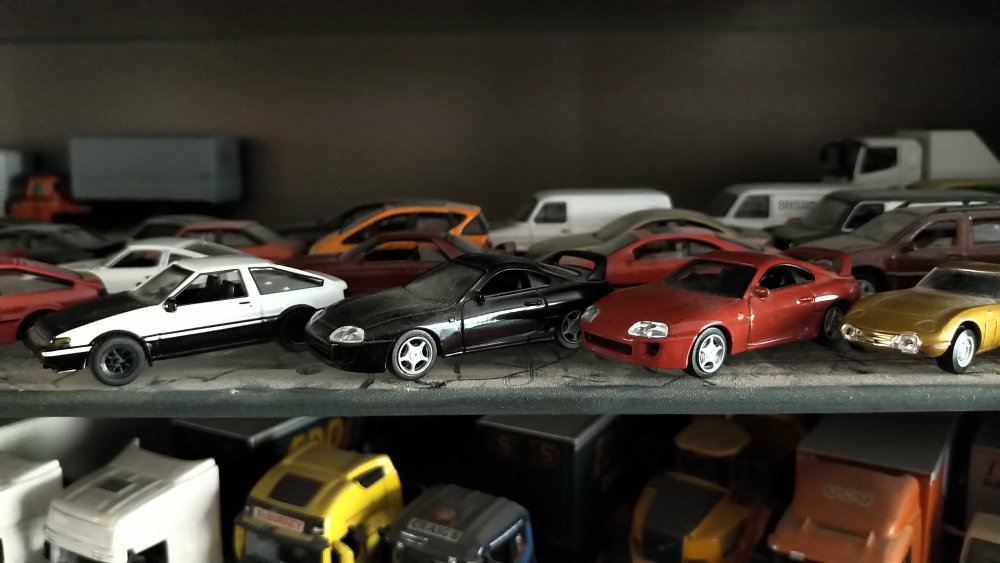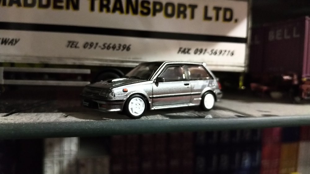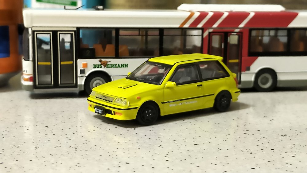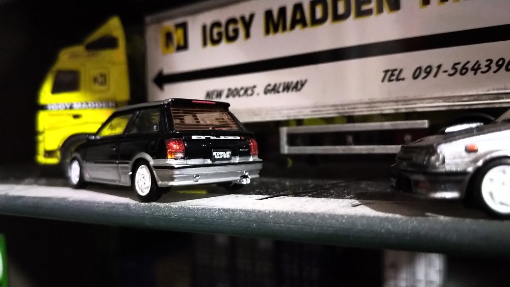 Only Toyotas that I have are older models. A mix of scales. The Starlets are supposed to be 1:64 but I'd say they're more 1:70. The rest are 1:72. The Evo at the end is 1:80 or something, so is too far off.