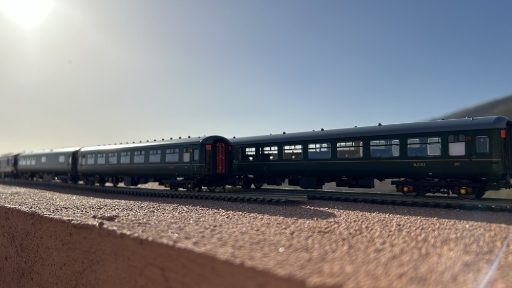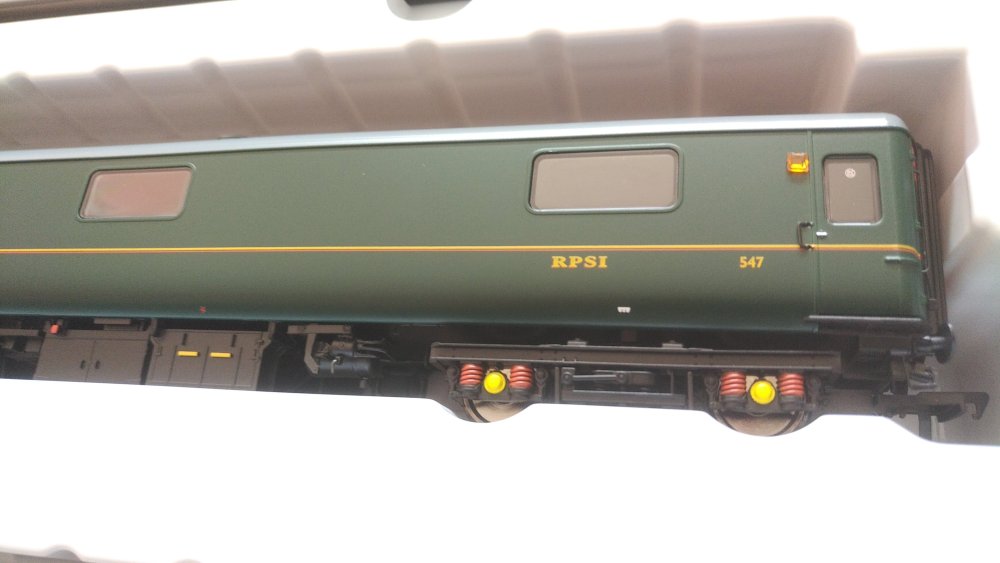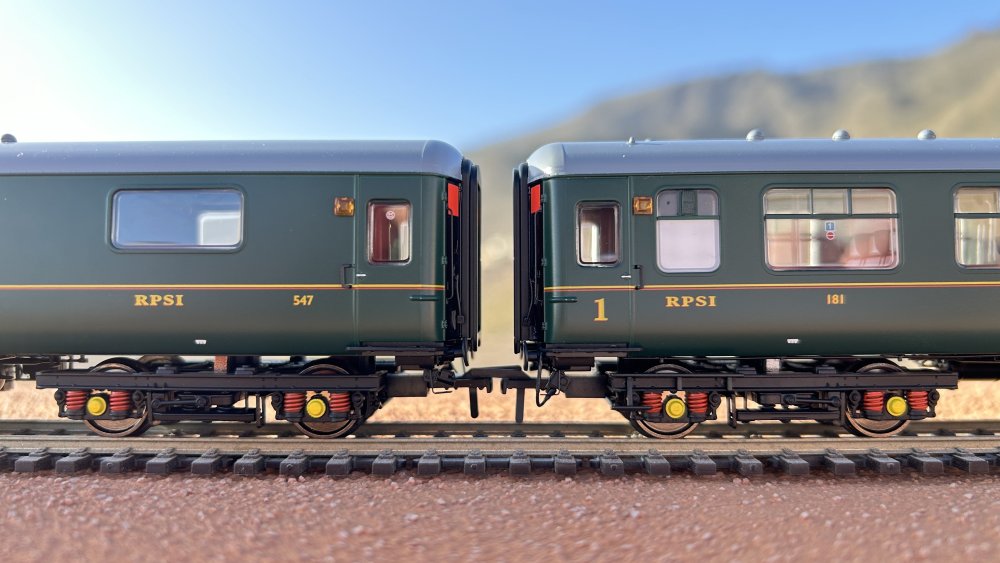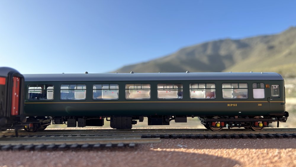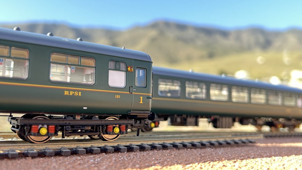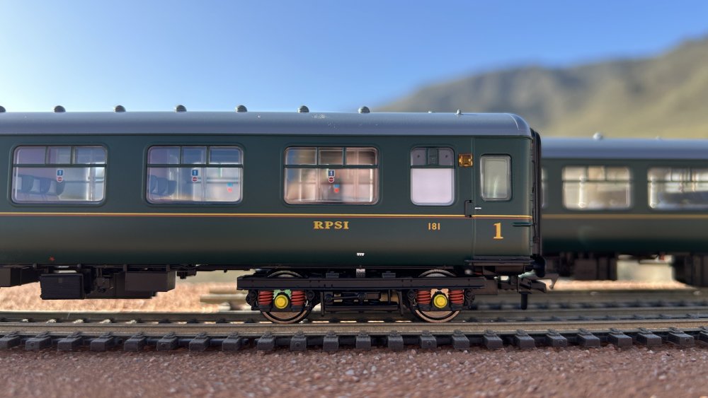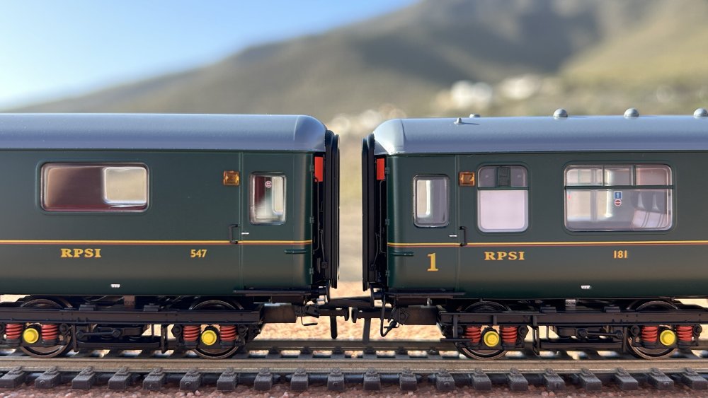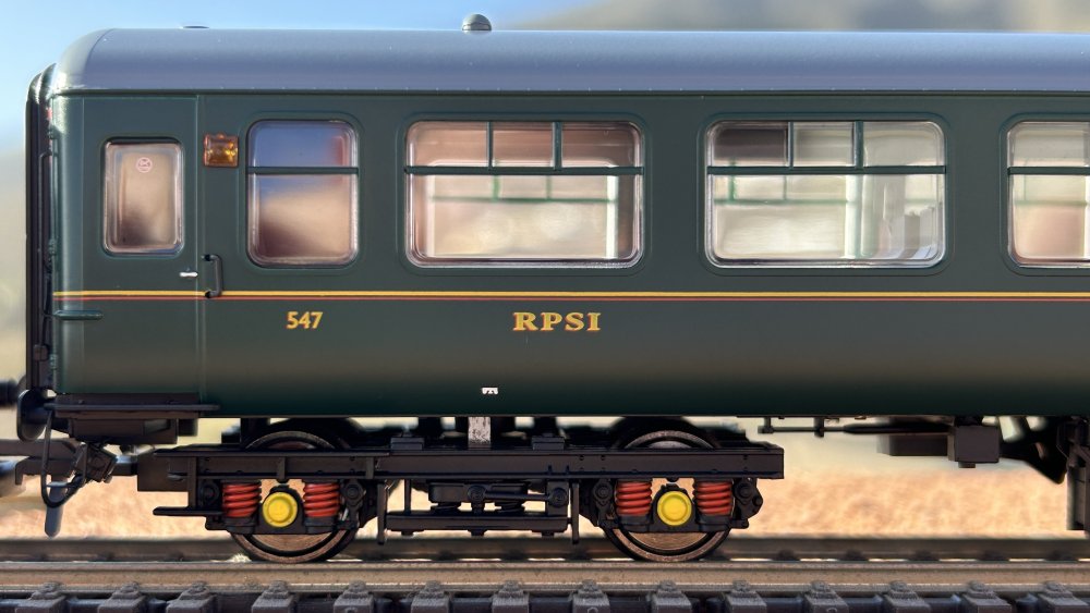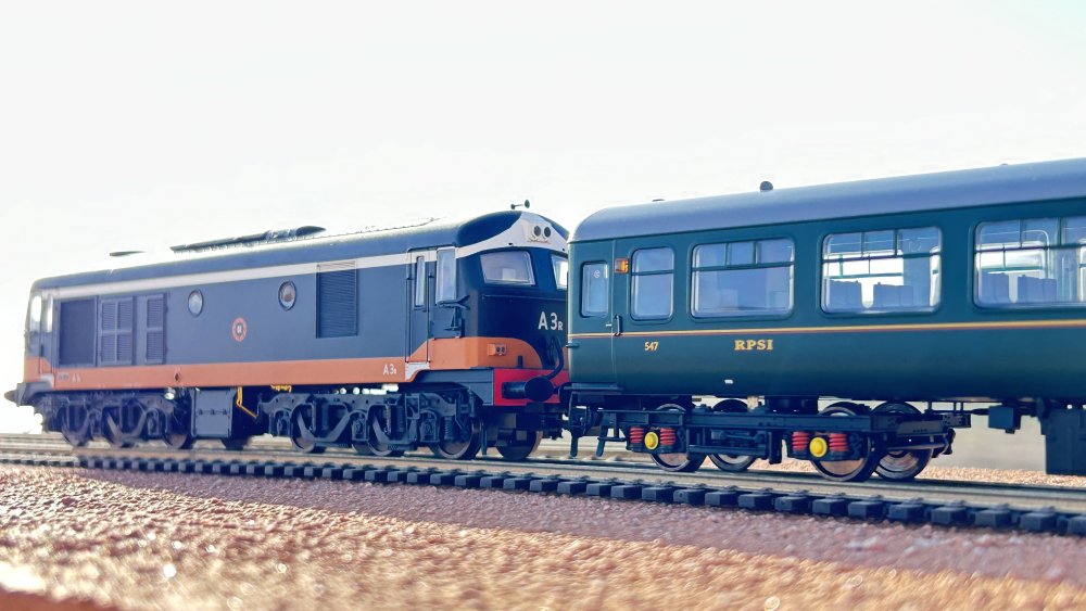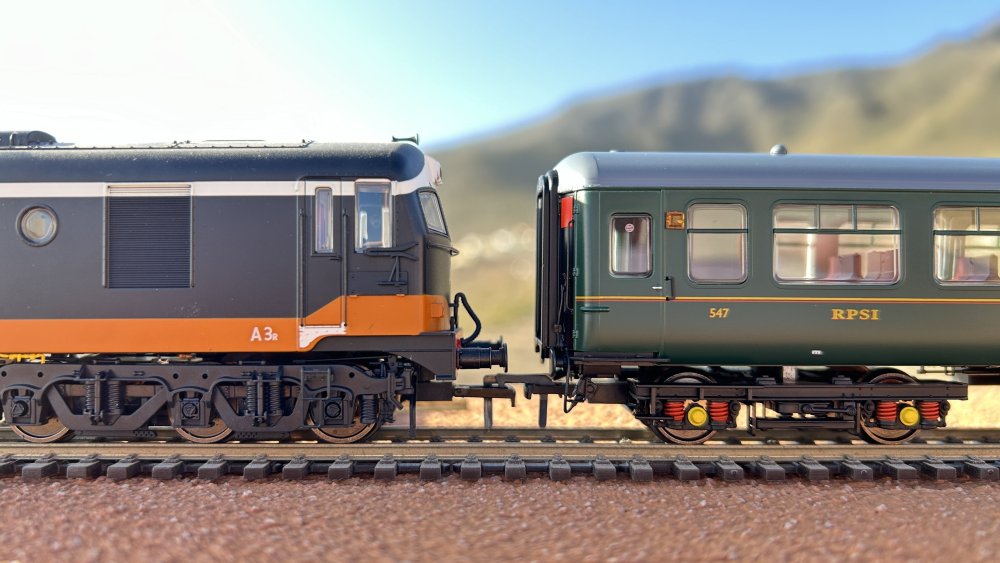 Had to have a closer look at IRM's first trainset, the ITG's A3R and the RPSI's Mk2 coaches! Up close and personal, these are just lovely lovely coaches. Again, lots of "No Smoking" signs so no work for @Rob! 547 rides a little higher than 181 and 300, maybe 1mm or 2mm. There's extra clearance between body and bogies compared to the other two. Is this prototypical? Sorry if the lighting is a bit off, hard to get a good balance with the sun in your face in this horrid heat.