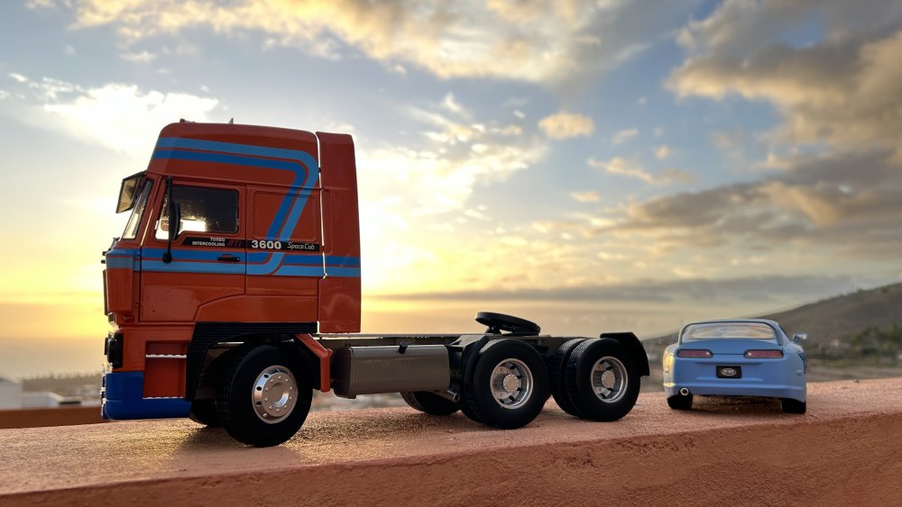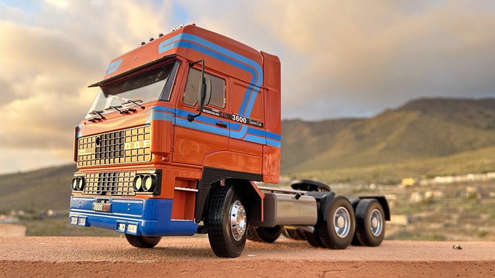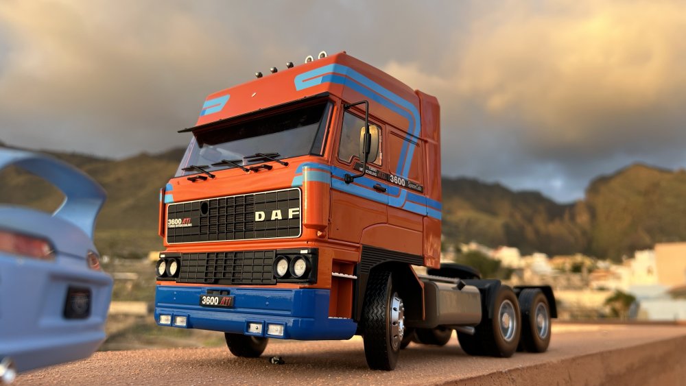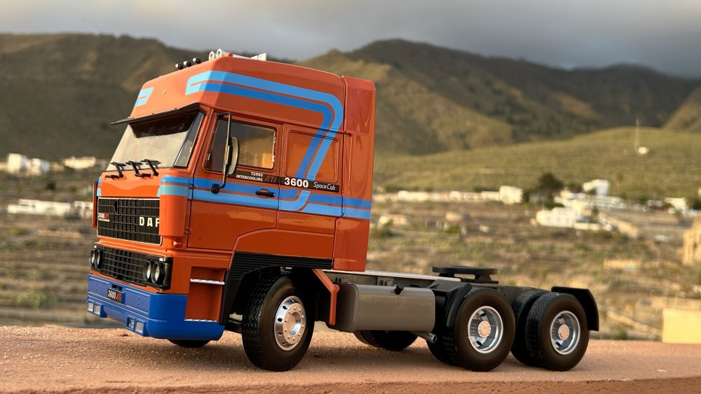 I, too, was tempted to do so... 1982 DAF 3600 SpaceCab from Road Kings: https://cochesdemetal.es/1982-camion-daf-3600-spacecab-naranja-azul-118-road-kings-180094