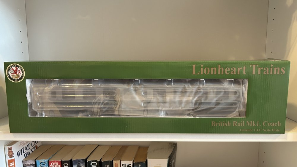 Received a text from my neighbour earlier to say that the postie had dropped in a parcel for me… Dapol / Lionheart BR Mk1 from Hatton’s! These yokes cost a fortune so I only buy them when they’re on offer. First impressions are good! Can’t figure out the couplings on any of these coaches, though. Even comes with a little booklet and two bags of bits!