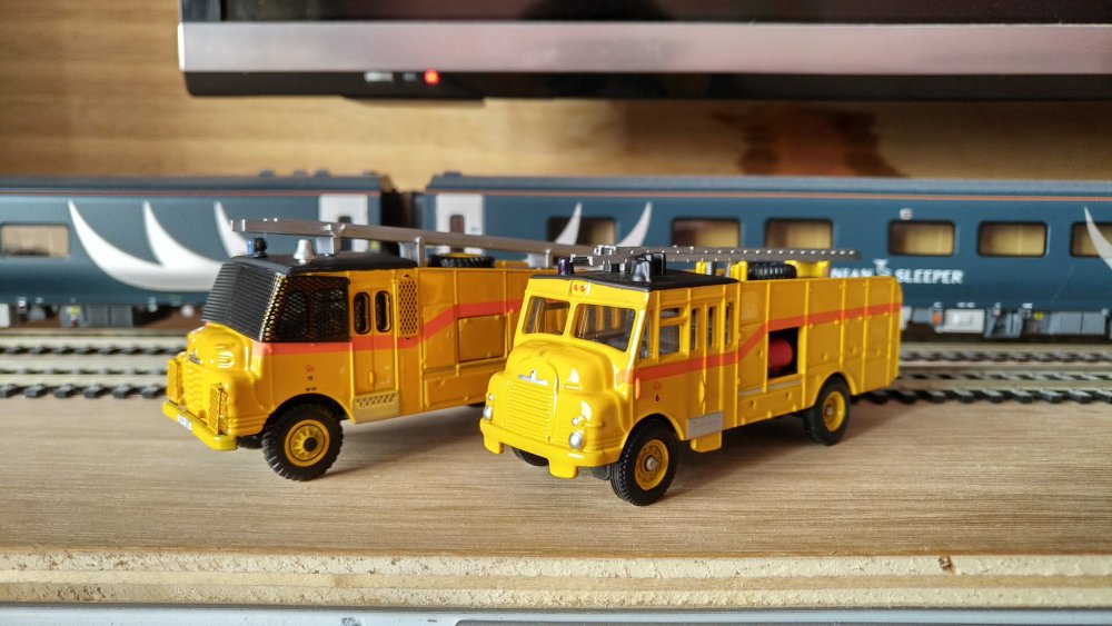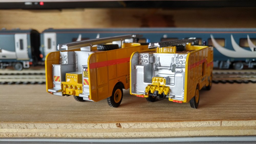 With something like 9,000 hectares on fire and almost 13,000 people in shelters, and the fire reaching the point where it can no longer be extinguished, it seemed poignant to have a look at these two today. Green Godesses from both Oxford and Corgi. The Oxford one is probably better overall but I prefer the look of the valves on the back of the Corgi model.