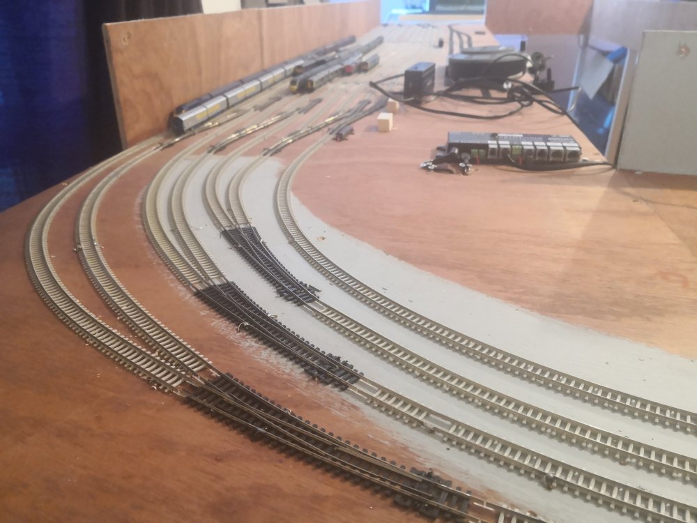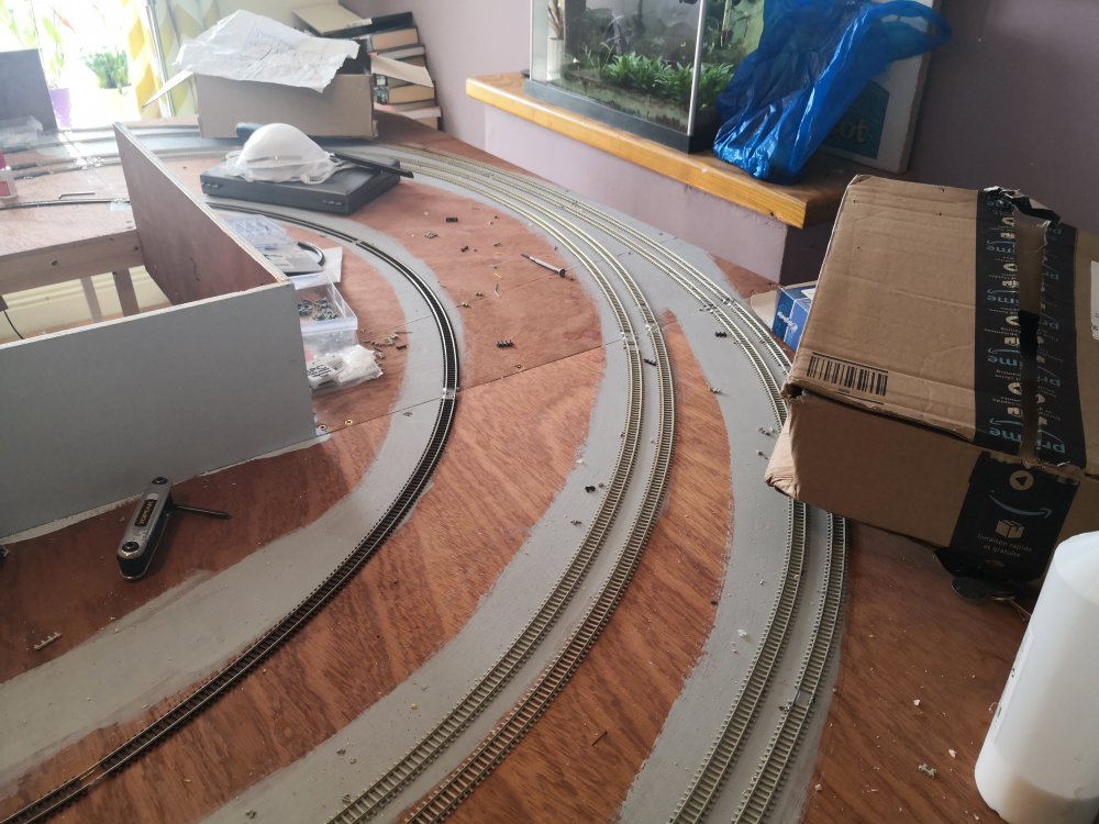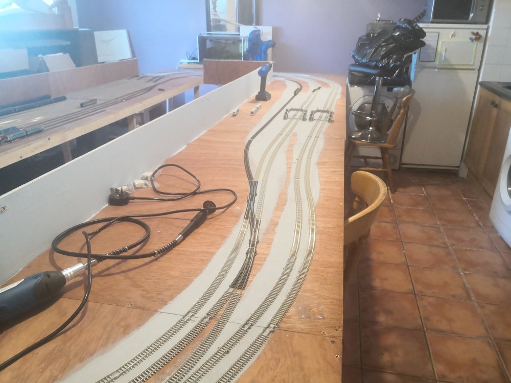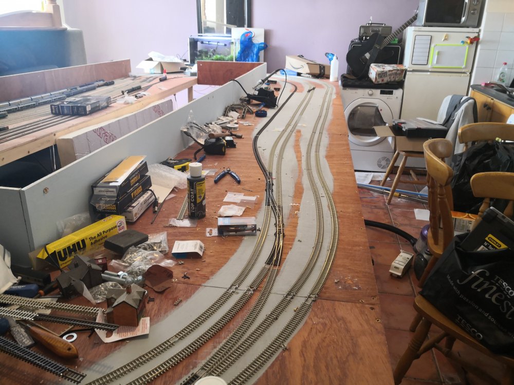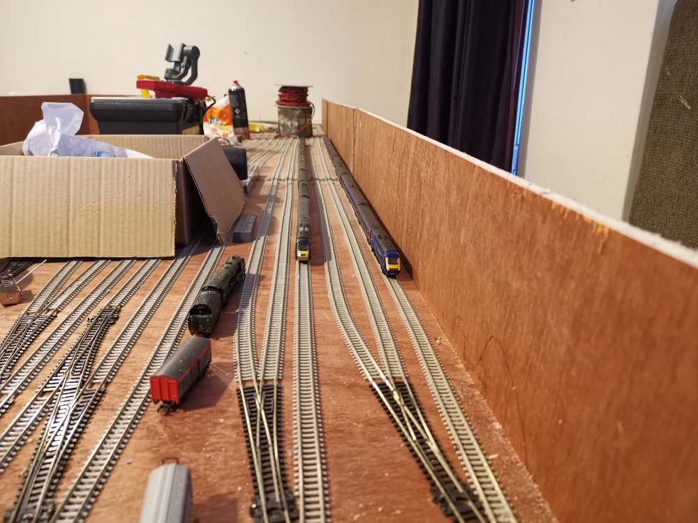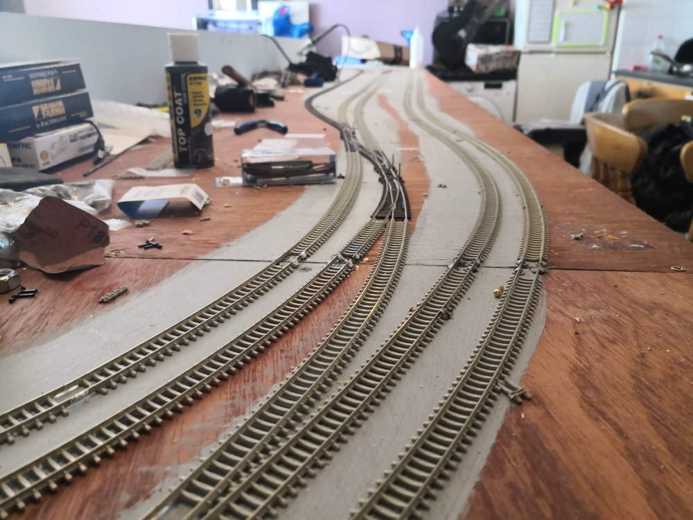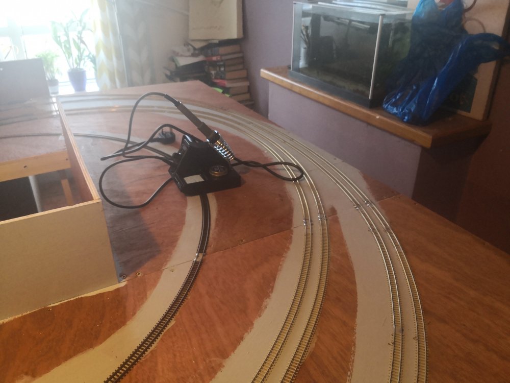 The rest of the track laying is done, just awaiting some more dcc point decoders. They are out for delivery so will make a start on those when they arrive.