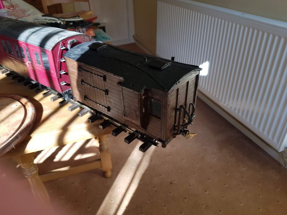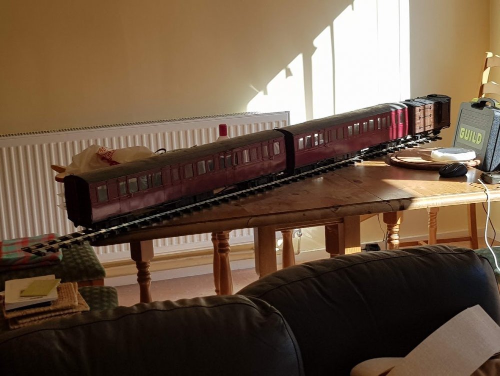 21. The 15mm scale Ballycastle line train completed and waiting for the S class to arrive, I need a bigger table Still, assuming I can find the correct paint, a few tweeks to the vacuum and steam heat pipes on the van.