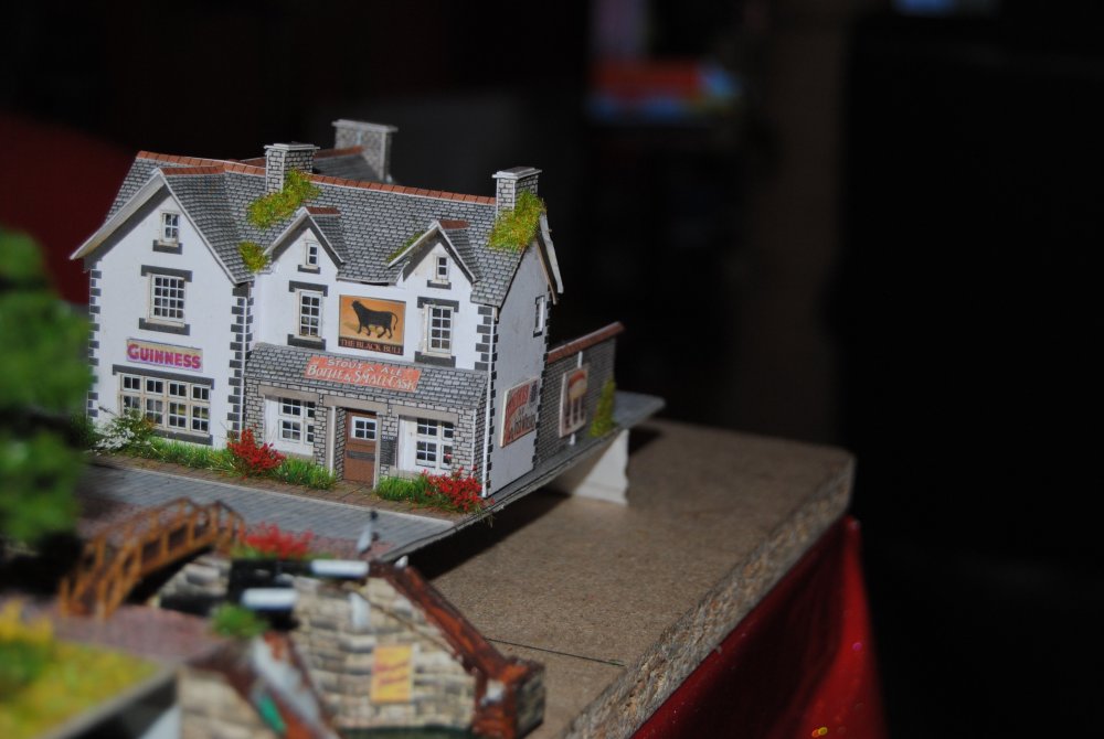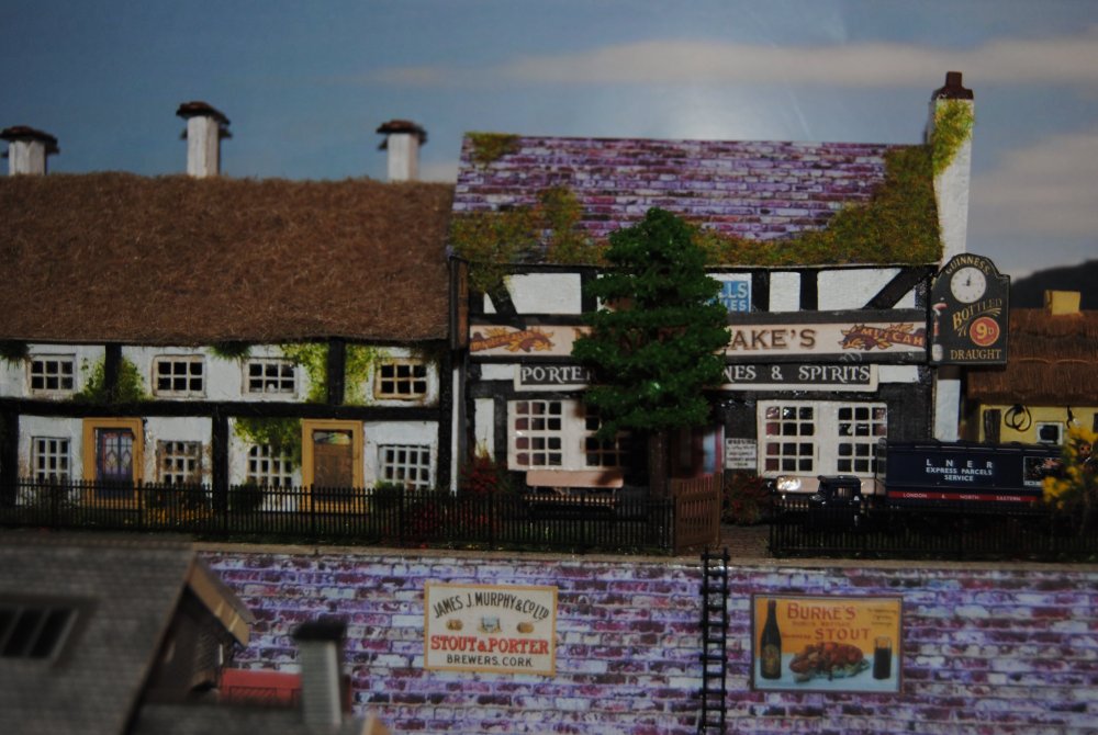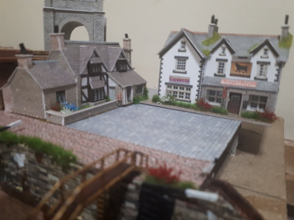 Canal Corner Black Bull pub & Lock Keepers Cottage The revamped man shed Just about to add weeds round platform base , flower pots , a few advertising signs , Hattons order arriving Monday with GWR spear fencing an a few more bits including a GWR restaurant coach still in a sealed box never used for €9 , Marks Models Dublin order on Tuesday with more Metcalfe kits , getting used to smaller size now so a test scratch build looks likely. Sláinte Murph ,