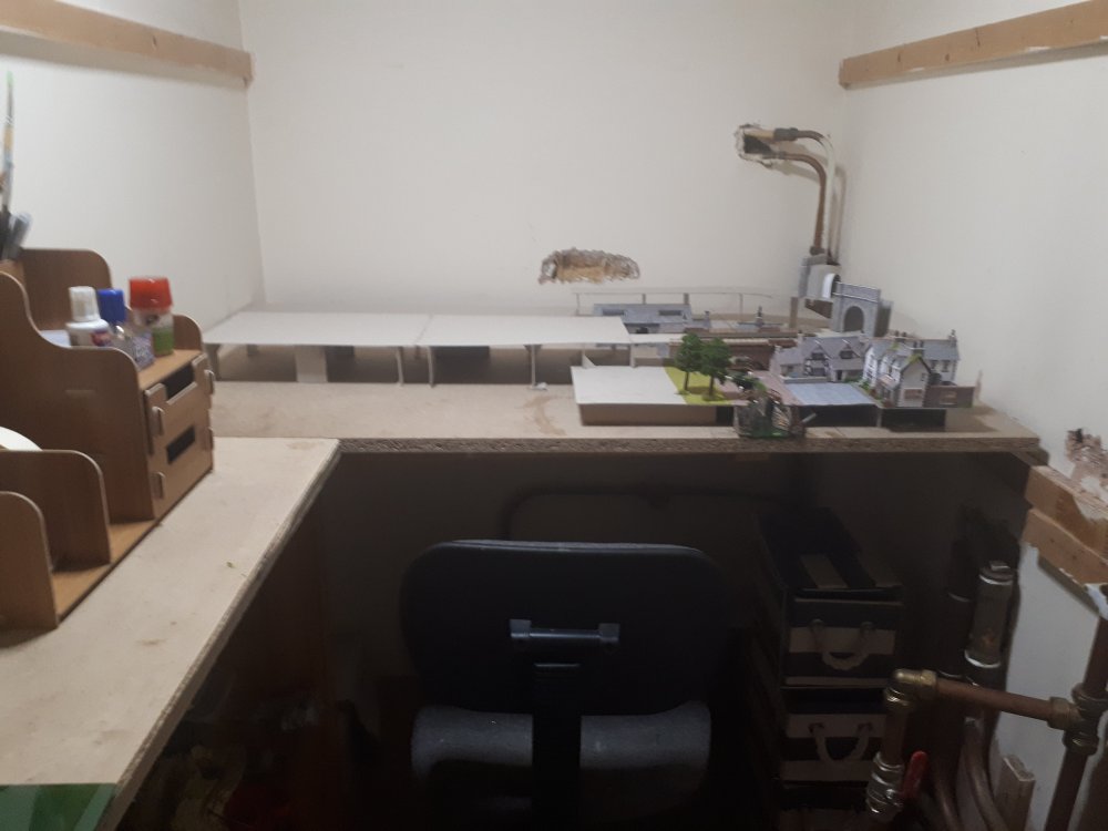 Right, big change, Murphy's Wharf has been retired, luckily I built it in sections and added them bit by bit so no damage done on removal from the man shed and the funeral took place in the spare room wardrobe yesterday. The N gauge project (still nameless) is being moved in today. Metcalfe kits coming on grand, really pleased with the ease of construction and superb detail, 4 X 2 baseboard increased to 4 X 3 and will now have a side extension making it L shaped, idea is to run a main line oval with two added loops of increasing radius bends on left hand side for train storage and will run into a a branch line terminus onto the other board , this means one train can disappear into the tunnel , flick the points and a different train will emerge, raised track beds on main board started yesterday. Wish me luck on move to it's new home and promise photo's will follow, Sláinte Murph
