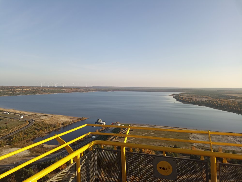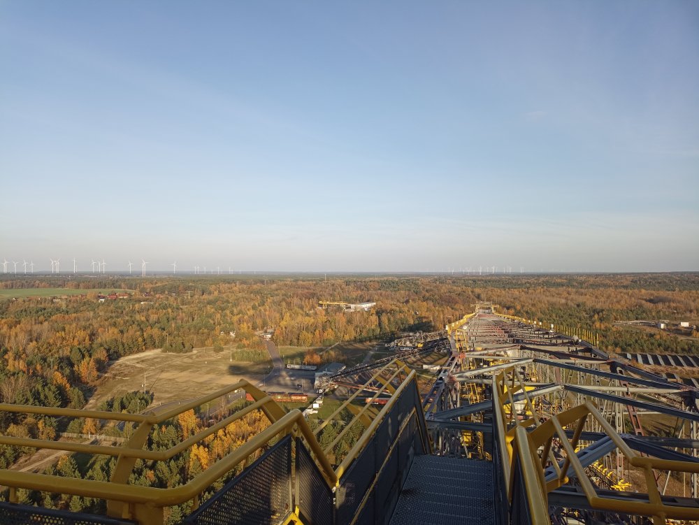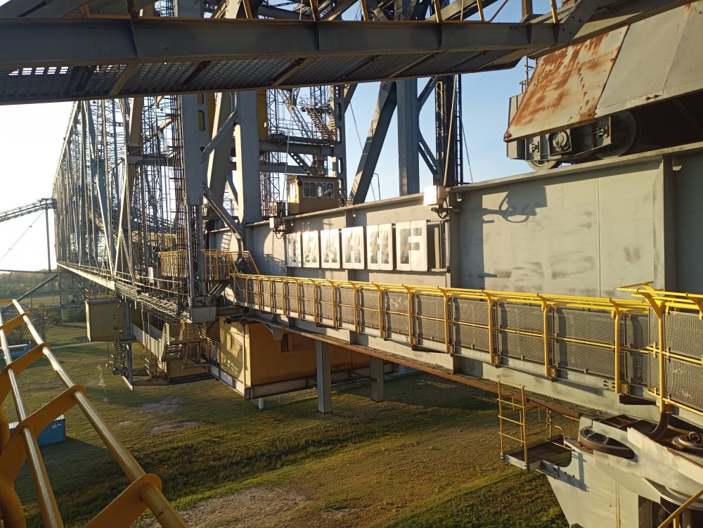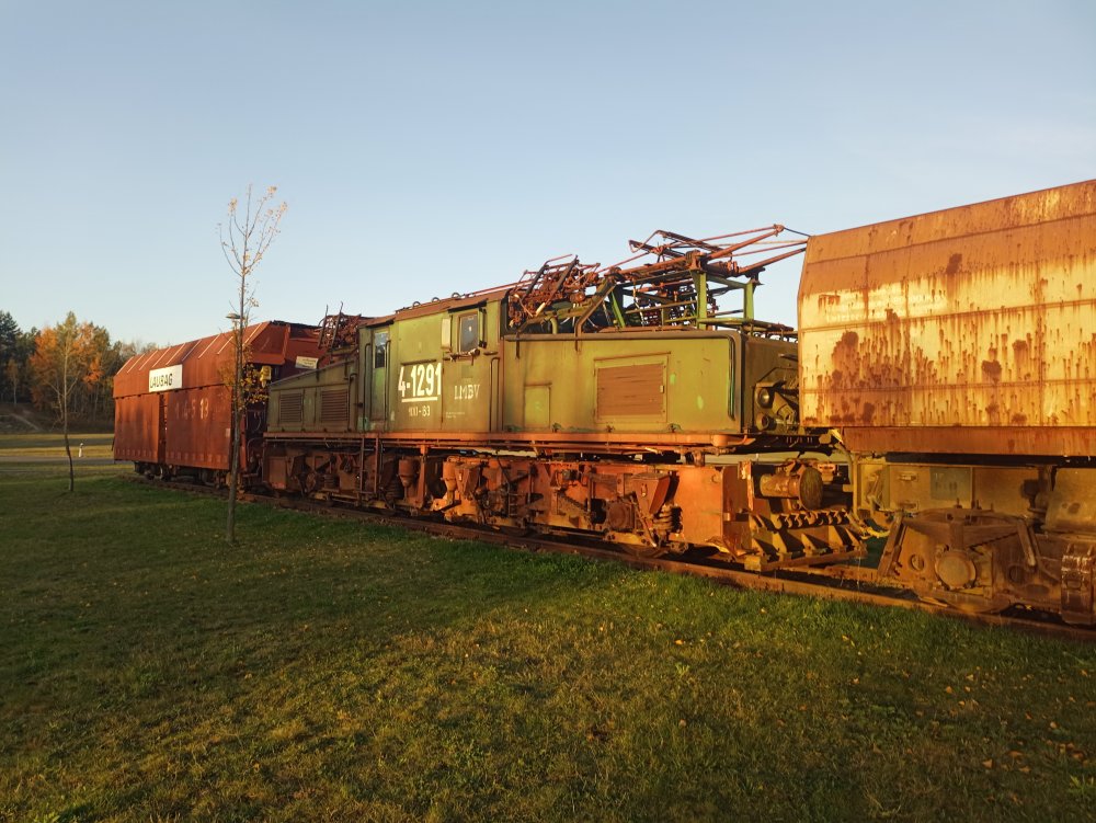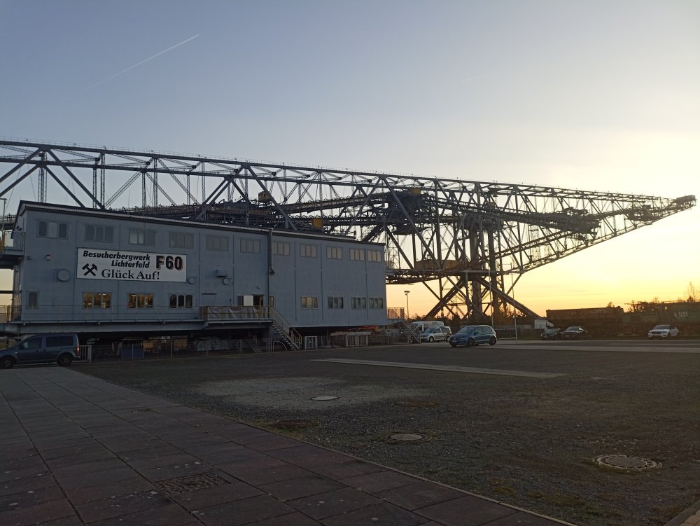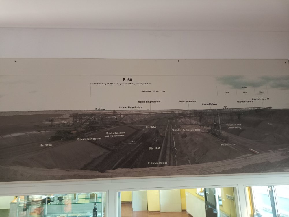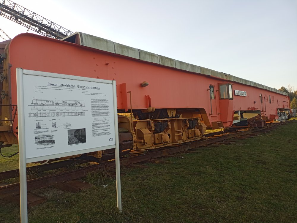 So strictly speaking this is a rail based vehicle and not just any rail based vehicle, but the second heaviest movable work machine in the world, weighing in at a massive 13.5 k tonnes and the largest (by dimensions) vehicle of any kind ever built, with a length of over half a kilometre. I was blown away by the scale of it. This one is preserved and will likely be the only one of its kind that will be preserved. There is no call for multiple examples of these machines all within a fairly small radius of each other. This one was in fact supposed to be detonated and scrapped, but thankfully some local enthusiasts intervened and were able to save it. The purpose of the machine is to remove what is called the overburden (a word I learned today) which is the soil covering and preventing access to a natural resource such as (as in thic case) a coal seam. It is not used to mine the actual coal! This example was the youngest, being built around the time of the collapse of the GDR. It was only in service for about one year, before being retired. The coal mine it operated in produced fairly low grade lignite that was used solely for the production of briquettes and coke for the local steel industry. Both of these customer bases dried up almost immediately after the fall of the wall. Nobody wanted briquette fires when gas and oil heating became readily available. The steel plants closed along with so many others. We took the guided tour and walked around a mile from the start to the end! We entered the beast at the excavator end and walked all the way to the highest point at the tipping end. The soil was released from a sufficient height to ensure it self compacted on impact and could support the weight of the machine when it came time to slew the tracks over and excavate a new part of the mine. https://en.wikipedia.org/wiki/Overburden_Conveyor_Bridge_F60 All pics taken today in glorious autumn sunshine Excavator end. The large drum on the left used to transport the main power cable. The machine is entirely electric with over 700 wheels. View out towards the tipping end. Spoil was released from the arms left and right. The larger yellow box slung under the conveyor was the control room. The tipping end. In the foreground the workshops, canteen etc. which was also rail borne and followed the conveyor as it moved. The excavator end. Note the two excavators were removed and are working in other mines to this day. The excavators fed the conveyors reaching down from the bridge on these huge arms. The spoil was carried up to the main bridge deck and across the open cast pit, to be deposited by the tipping end. Drawing of the behemoth. The excavators (Bagger) are shown in the lower drawing. It's pretty high even at the excavator end! The walkways were adapted before tourists could access the machine. The miners did not have the luxury of almost solid decking. They had to look down through a metal grid. They also had simple handrails, without the extra plating. The yellow structure slung under the bridge and nearest to the camera is the computer! This thing was ultra modern in 1990 (for GDR standards anyway) but it still took a room to contain a fraction of the computing power we carry around in our pockets these days). View from the highest point at the tipping end. A good 74m above the ground. Above the open cast pit the height was actually higher but falling from any part of this machine would not have ended well! A picture of an F60 in operation with teh 2x Es 3750 excavators showing how it operated. In the open cast pit itself the coal was excavated with a separate machine, the SRs 1301 and the coal was transported out lengthways along the seam along a conveyor belt (Kohlebandanlage). View along the main axis towards the tipping end.At this point we descended the stairs and then continued towards the highest point along the right hand catwalk, returing on the catwalk on the left. Another view from the top. The lake began forming as soon as the pumps keeping the groundwater out were switched off in 1992. It took 10 years for the water to reach its current level. The area is now being developed for tourism. A panoramic view of the machine, which involved a long walk and setting my camera to panorama! No chance of taking a normal picture from within the site. The track slewing machine. The sleepers are hollow steel type, lighter than wood, which enabled this machine to pick them up and slew them over by 60cm. Close up of the "slweing head". It could be moved left ir right, depending on which way the main machine needed to go. Sketch of the track slewing machine. Locomotive used on site. Not exactly sure what role this had. The guide had left at this point so I couldn't ask unfortunately.