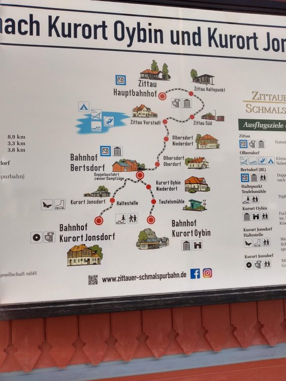Nice to get the feedback so I know I'm not just spamming the forum with irrelevant content connolly. Much appreciated. My next "target", probably next week is likely to be the Zittauerschmalspurbahn or Zittau Narrow Gauge Railway. Zittau is located in the Free State of Saxony, right in the corner where Germany, Czechia and Poland meet: https://g.page/zittauer-schmalspurbahn?share Germany to the north, Czechia to the west and south and Poland to the east. The railway heads south from Zittau, departing from the narrow gauge station adjoining the standard gauge mainline rail one. The line continues to Bertsdorf where it branches in two. Both lines continue south into neighbouring parallel valleys and terminate at the spa resort towns of Jonsdorf and Oybin. During the week trains to Oybin are through running with a change at Bertsdorf required to head to Jonsdorf. Interestingly however they run trains between the two branch line termini, via Bertsdorf without the need to change. The route takes about an hour in each direction from Zittau to either terminus, so I can cover the whole network behind various traction (diesel and steam operate, the steam trains hauling DR stock) and still be home at a reasonable hour. I will again depart from my local station at 5.40 and reach Zittau at 9.56. If the RE2 is running through Berlin again (it currently only runs to Charlottenburg in western Berlin) then it's a fairly pleasant journey with just a short hop two stations and then the RE2 all the way to Cottbus (the RE2 is one of Germany's longest regional expresses) and just one more RB (Regiobahn, or regional train), the RB65 to Zittau. https://www.zittauer-schmalspurbahn.de/ https://en.wikipedia.org/wiki/Zittau–Oybin/Jonsdorf_railway There is a "hefty" €5 surcharge for a day's use of the network for holders of a €9 ticket. I think I can manage that lol. Normally a day ticket is €17, which isn't bad either in fairness but the €9 ticket means I can get there and back for nothing.