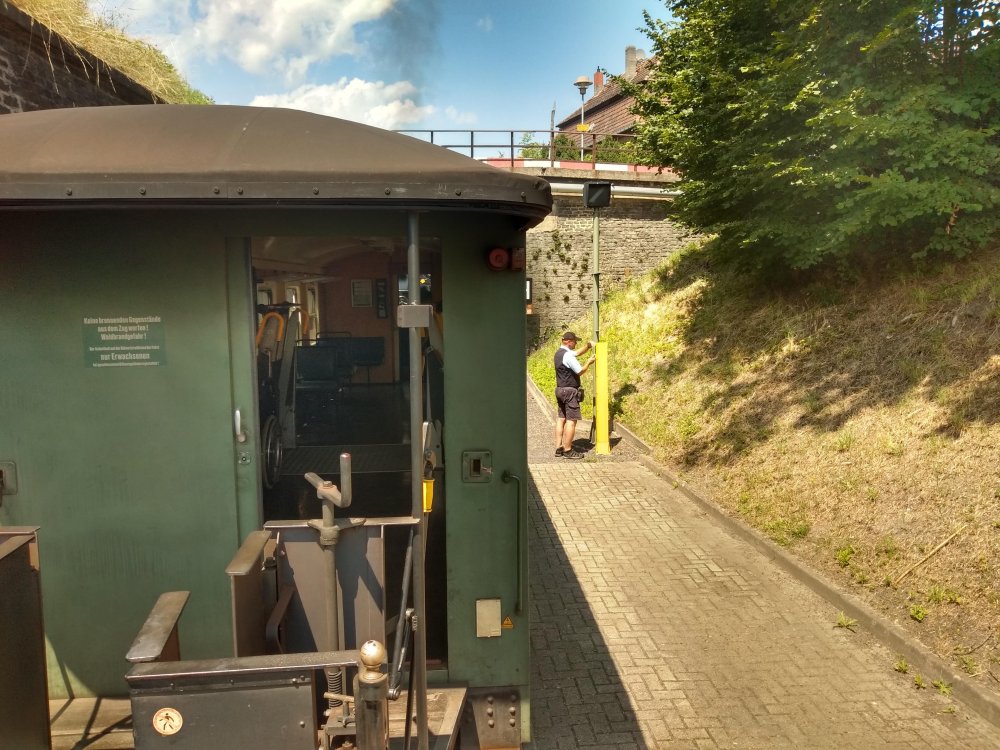 So yesterday I took another spin to another narrow gauge steam system. This time the aforementioned Zittauerschmalspurbahn. Unfortunately there are still works restricting the capacity on the Berliner Stadtbahn (our 100 year old version of Crossrail that runs east-west right through the heart of the city, except all on a viaduct or otherwise elevated above street level: https://en.wikipedia.org/wiki/Berlin_Stadtbahn The works mean my local regional train, the RB14 terminates at Charlottenburg but this trip involved traversing the city so I waited briefly for an RE1 (they have priority and can still use the Stadtbahn it seems) and took this to Ostkreuz (eastern cross, where the Stadtbahn intersects with the Ringbahn, or circle line). From here I took an RE2 to Cottbus in the far south east of the state of Brandenburg. There the connection was delayed but connecting trains waited and I had a cross platform transfer to the RB65 to my final destination on the mainline network, Zittau in the far south east of the state of Saxony. Unfortunately there are track upgrade works so at the moment the middle-of-nowhere station of Hagenwerder is the terminus. From there a seamless rail replacement service took us by bus to Zittau Hbf. In the end the rail replacement service added a nice bit of interest and my phone welcomed me to Poland and back to Germany the whole way along the route as the border parallels the road. From Zittau I took the narrow gauge direct to Oybin, then straight back to Zittau, then to the Junction station at Bertsdorf, where I changed trains and headed to Jonsdorf, from where I took the train back to Bertsdorf, changed again and headed back down to Zittau to catch my bus and head home the way I came. I made a stop in Berlin Hbf as it turns out and took the RB10 home instead of the RB14 as the timing was better. A couple of pics of Berlin Hbf are therefore included for completeness. It's basically a large shopping centre with a railway station inside it really. Ok, so on to the pics... Arriving into Lübben, which is the first station in the bilingual Spreewald district. The other language here is the minority Sorbian, a slavic language, which is strongly protected by the German state following the persecution of Sorbian speakers under the Nazi regime. I can thoroughly recommend a visit to the Spreewald. It has a real primordial feel to it. The area is known for its canals and features Germany's only canal boat postal delivery service. The little punt is also Germany's smallest Postbank outlet and sells stamps and other postal services to customers: https://de.wikipedia.org/wiki/Postkahn (sorry German only) All change at Cottbus, where a track measuring train sits idle in the yard: DMU traction now all the way to the end destination. Next point of interest is the border station of Görlitz. Presumably they needed many more platforms at one stage to perform customs checks on trains arriving from Poland. Now abandoned: My temporary rail terminus on the mainline system for today, Hagenwerder, where we changed over to a bus replacement that was waiting for us: And now a few images from Zittau itself, including what appears to be an old ballast wagon: Loco running around in the bus station in Zittau: Arriving Zittau Vorstadt: The junction station of Bertsdorf now: The terminus at Oybin: And now the other terminus at Jonsdorf and some snaps along the way back to the junction at Bertsdorf. Note the signal cabin is located slap bang in the middle of the junction, controlling it by way of semaphore signals still: And for the sake of completeness a couple of snaps of Berlin including Hbf as I did pass through here too. The station is two level (excluding the U5 U-Bahn and under construction underground S21 S-Bahn), with 8 low level platforms running north-south and a further 6 high level platforms (4 for IC & regional, 2 for S-Bahn) running east-west, connected by the world's slowest lifts (pro tip, unless you have really awkward luggage, take three escalators rather than waiting for a lift). The station is (in)famous for its huge glazed roof being too short. The contract was poorly defined and the contractor was forced to end the works prematurely so the station could open without scaffolding for the 2006 world cup. The roof contractor sued and won his case and he has a legal right to come back and finish the station roof to its full length (presumably when times are hard again in the building trade!). The low level platforms taken from an intermediate level: The east-west tracks are supported by those columns. The bridge in the very top of the foreground is carrying the S-Bahn tracks left to right: CD operated Eurocity train from Prague to Hamburg departing from the same platform my RB10 will depart from shortly. Loco appears to be leased from a German owner however: A Talgo "Bumblebee" (Hummel) shunter at Bhf Warschauer Straße (Warsaw Road Station). This depot did at one stage service Talgo coaching stock but I haven't seen any here in a while: Videos of the steam part will be uploaded to YouTube and linked in a subsequent post Edit. The editor decided to insert these images without me clicking "insert". I don't know if that's expected behavior but anyway I'll just leave them. One of them I actually forgot to add so I'll comment that as it's rare.... A diamond crossing of an unusual type. The track we are crossing over is standard gauge mainline rail belonging to the Deutsche Bahn. This requires communication between our conductor and the DB signaller, which is what is happening in the pic below where he is standing at that yellow DB post on the little halt immediately before this diamond: This viaduct carries the mainline rail we are about to cross over. Strange arrangement: