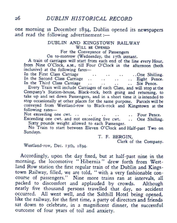 It was a Wednesday morning and the date was 17 December 1834. At 9:30am a train of carriages of the first, second and third class hauled by Hibernia departed Westland Row filled with passengers. The rest is history. If you have any words or pictures to share, today is the day.