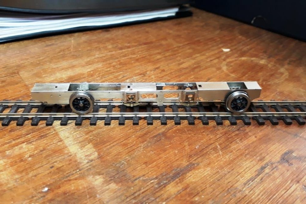 The radial trucks are based on the London Road Models ones for their LNWR radial tanks and the gearbox started out as a High Level Slimliner but now has been on a serious diet and got new sideframes. The springing does bear on the trucks as you can see in this photo. And this is where we stand now Phil