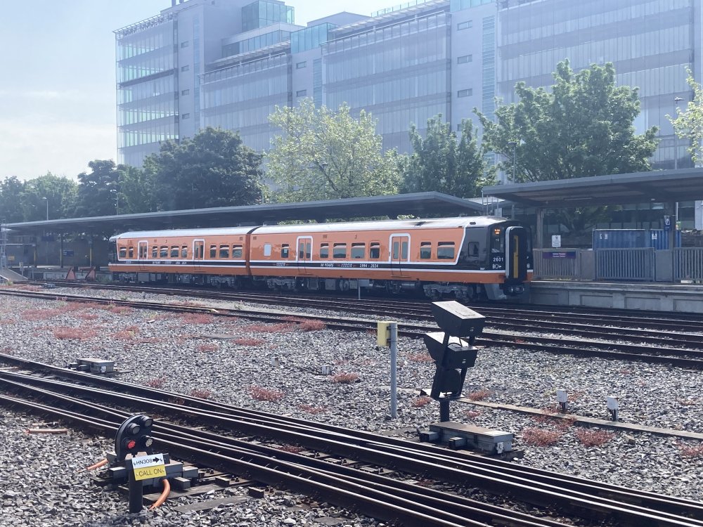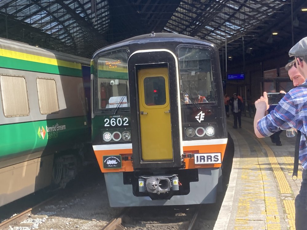 Some of my images of the Times Arrow Railtour. One which had achieved the rank amongst my favourites, maybe even my favourite Passing where the loop once was. And where the new platform will be awaiting departure on 5 Trolly service on a 2 car 26! Richie lee gifting himself something for his birthday no doubt while held up outside Limerick, some fellow gricers started accumulating around the train…. Thurles the invited guests in question being signatories from tokyu car….including somone who designed 2600s Driver Ken fox making sure no one didn’t accidentally board this train, displaying many random locations throughout the country a shot of the railcar roof 30 years old vs 41 years old the lotto building bought and audible gasp in the railcar a comfy reliable train, next to a DD set in Dundalk Malahide A sneaky headboard application…. Heuston At the end of day 1 day 2, off from the military platform Cobh now, and with kind permission from HQ, the Munster area headboard goes on The left excellent Team that staffed the tour migration across the footbridge Terminus of the tour, platform 5 Kent “dineen dairies” “2601 pints of milk”