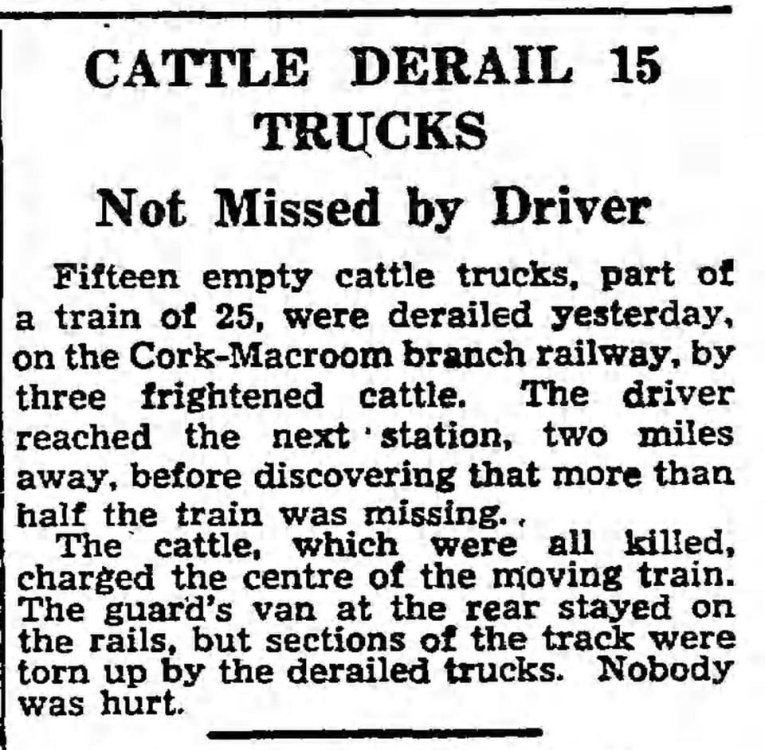 A person on Facebook said (and when your only source is Facebook you know your in Trouble) said that one of Audrey’s stories was directly inspired by one incident on the Cork and Macroom Railway. The incident in question happened in 1952. The post was accompanied with the following article. I, naturally, have never followed this up with any further research….So take with a pinch of salt! if this is true, then making up a train of some cattle wagons and a GSWR F6 tank engine shouldn’t be to hard to recreate. -