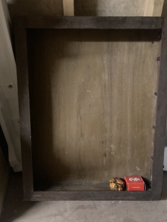 As you can see, there has been some repairs and modifications to it already. It was used in a model show for many years displaying models. It’s clear that 2/4 sides were replaced with some sort of ply wood. The result is a lot of warped and desroyed wood. It might be of use as a frame using the base and the front (would need new glass)